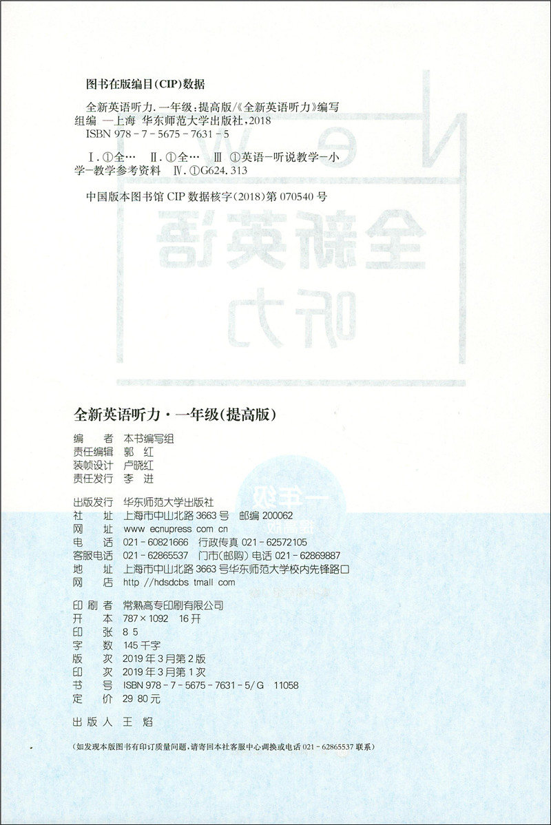 2020新版 全新英语听力一年级提高版 小学1年级英语听力 扫码听录音 小学生英语听力练习 英语听力强化训练 华东师范大学出版社