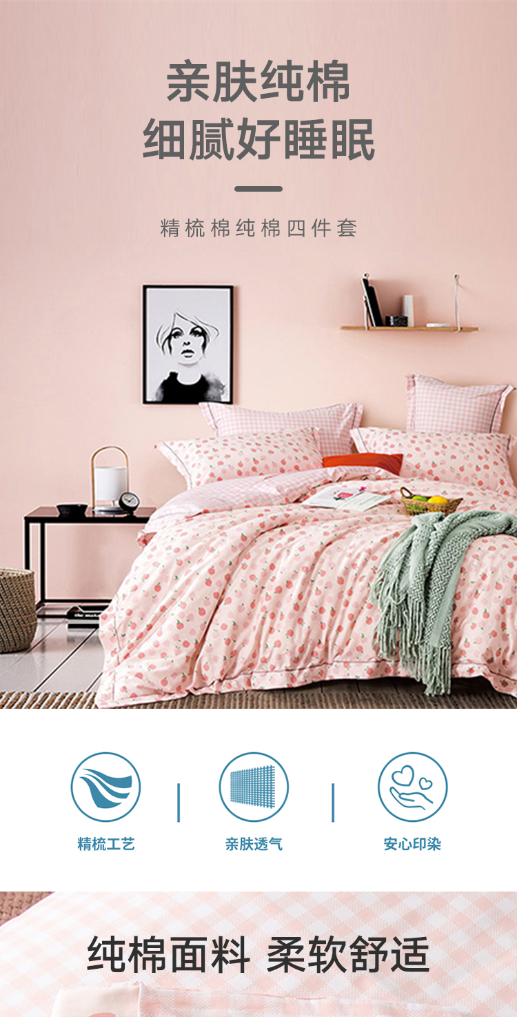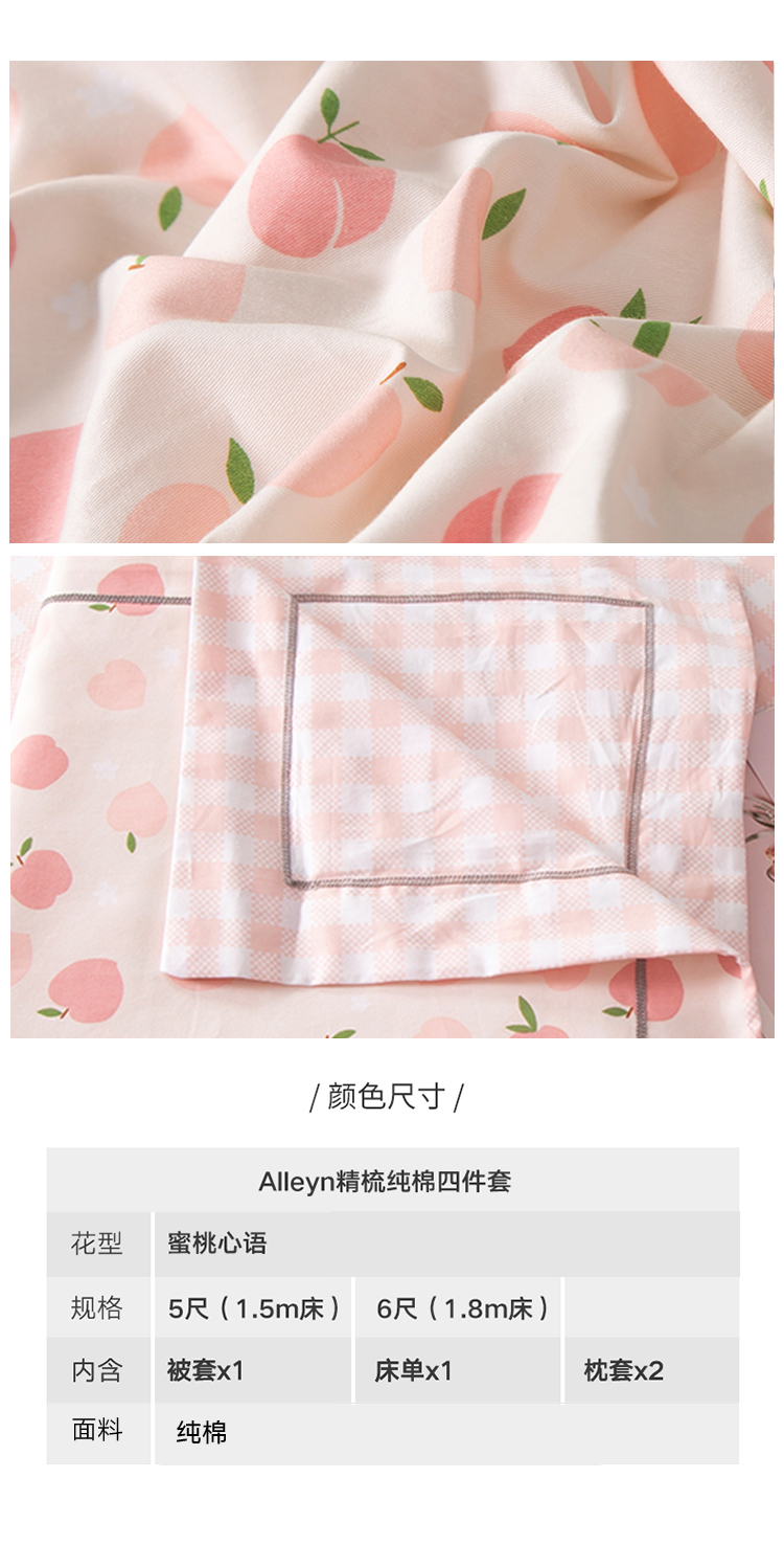 ABS爱彼此 蜜桃心语精梳纯棉四件套