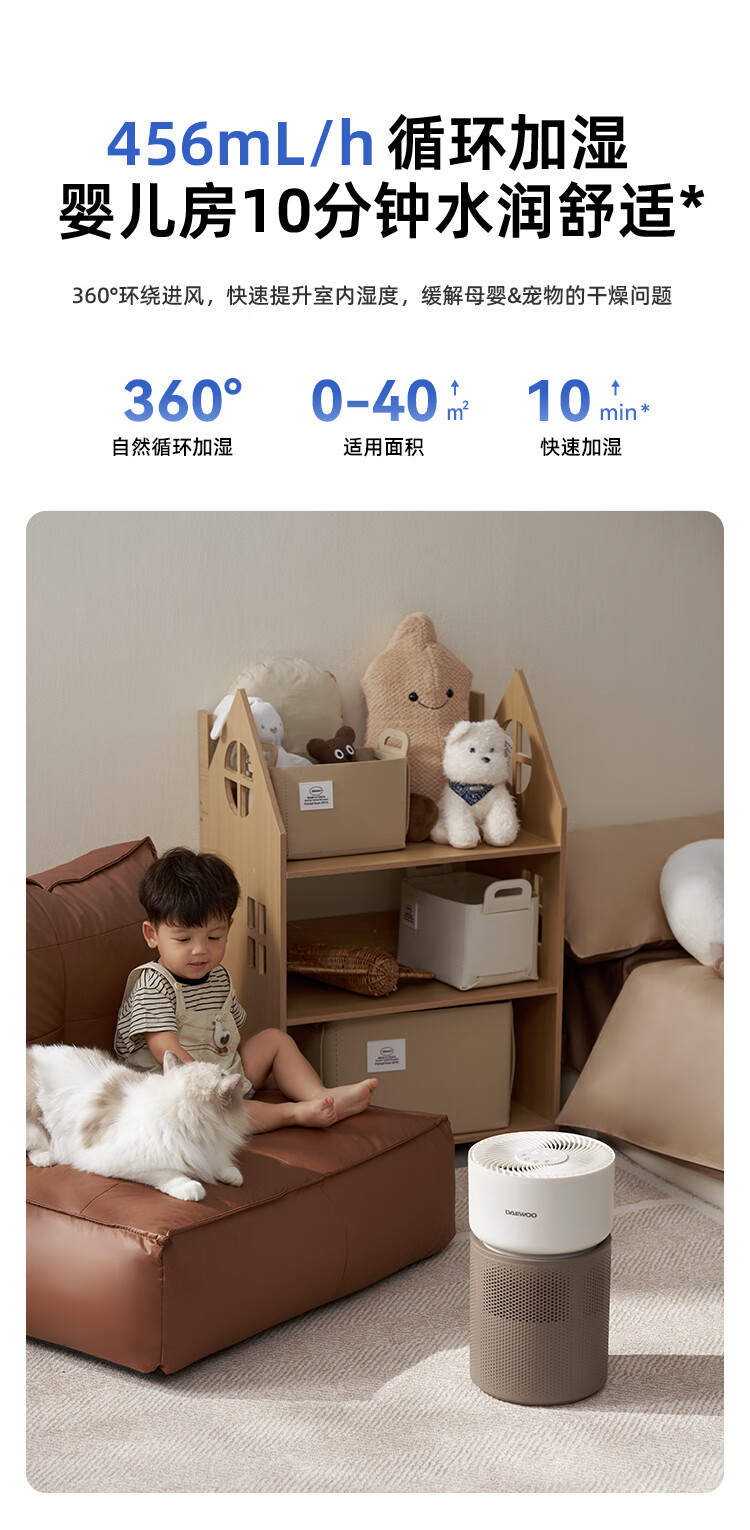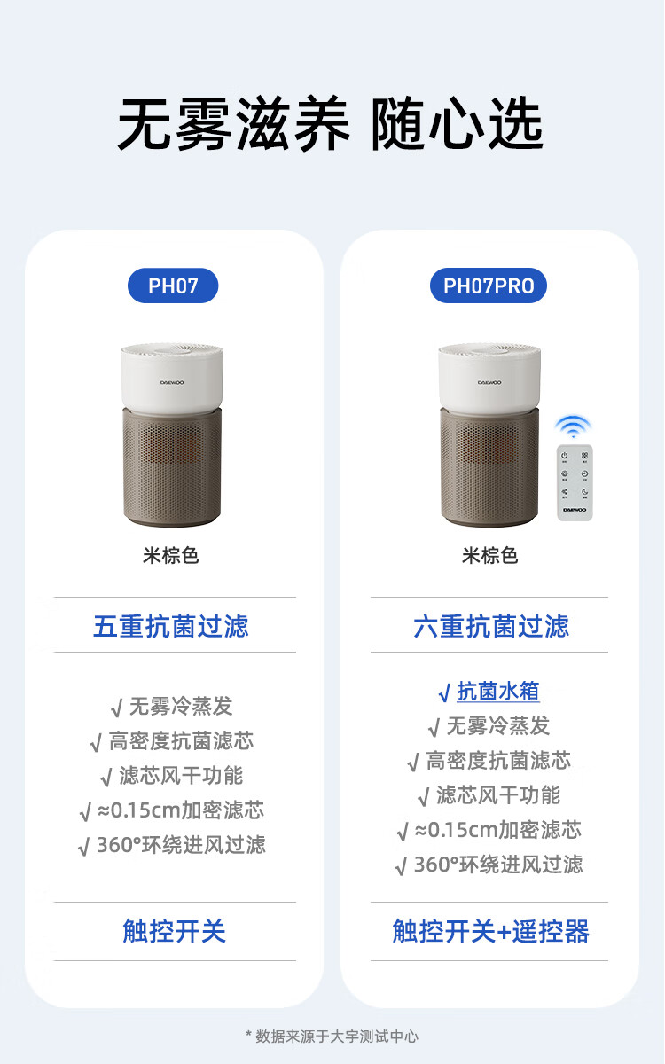 大宇【25年新款】无雾超润加湿器卧母婴级室家用孕妇婴儿空气加湿上加水落地式冷蒸发空调伴侣PH07系列