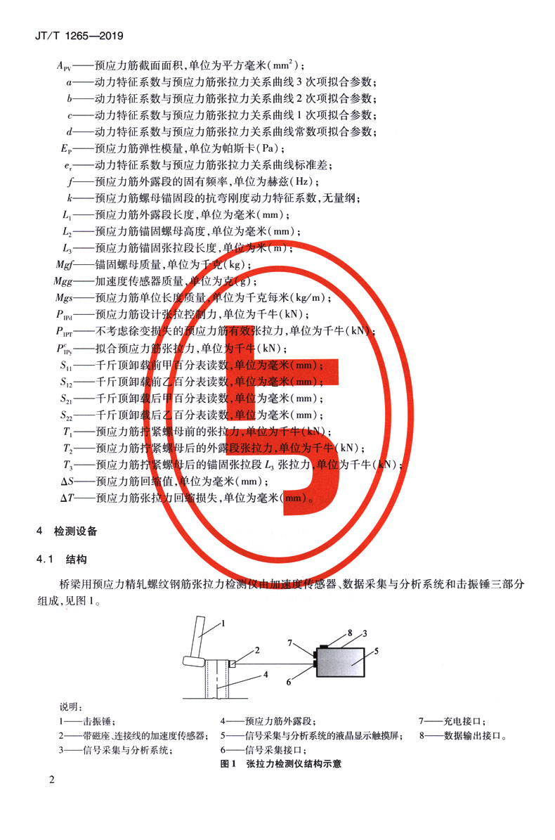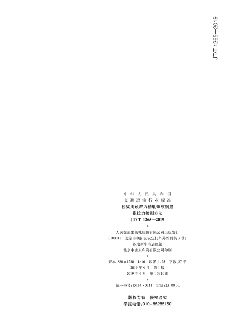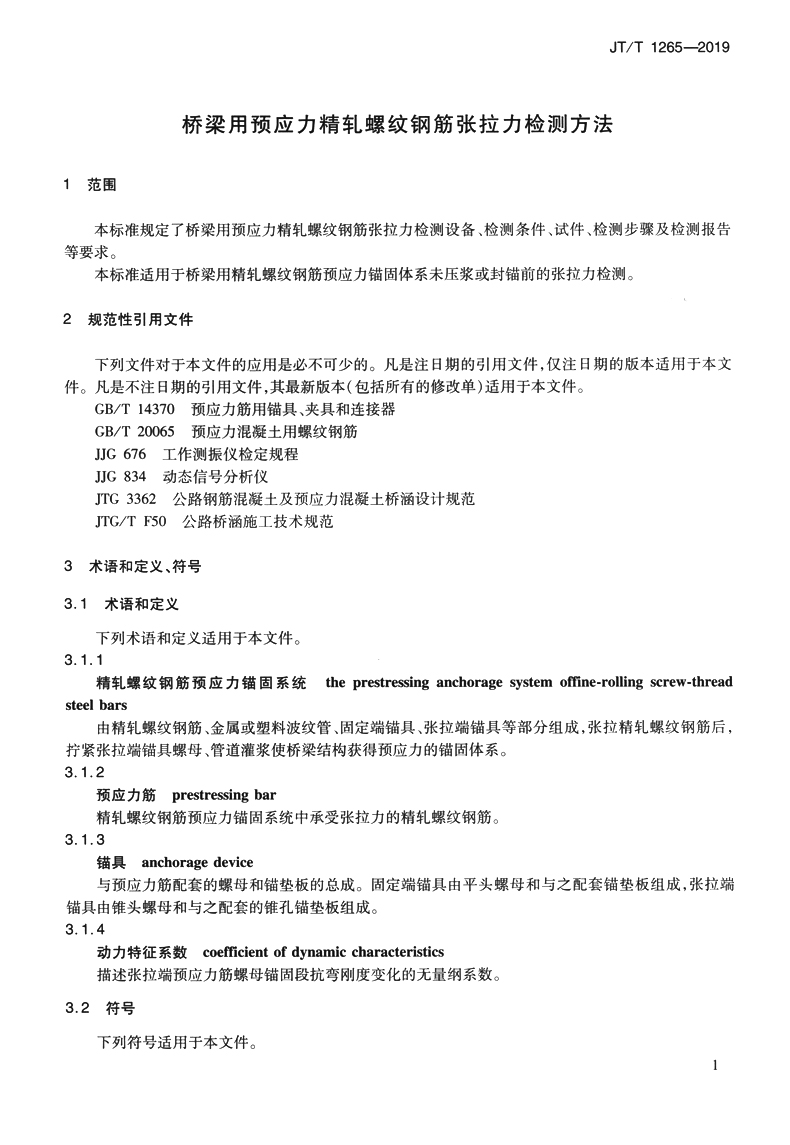 书名:桥梁用预应力精轧螺纹钢筋张拉力检测方法(JT/T 1265—2019)