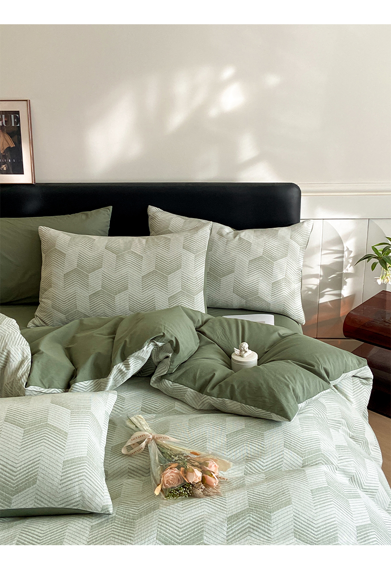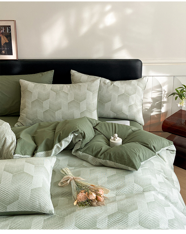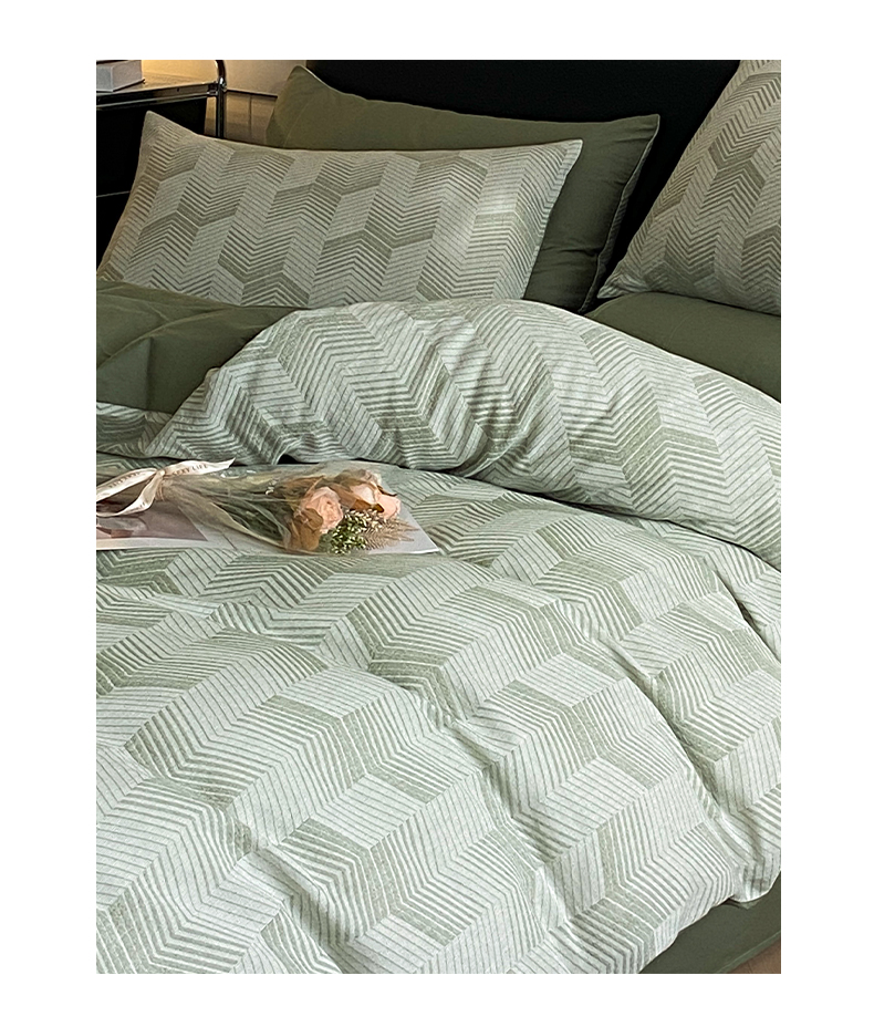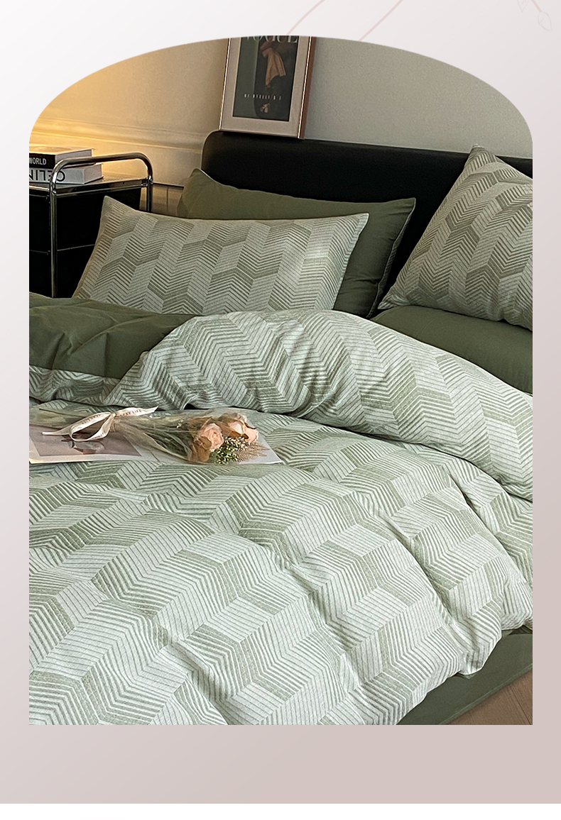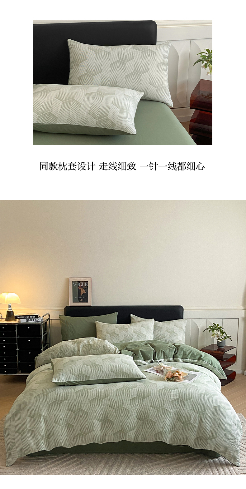 顶柔全棉三层纱空气层提花水洗棉撞色四件套-TJ1399