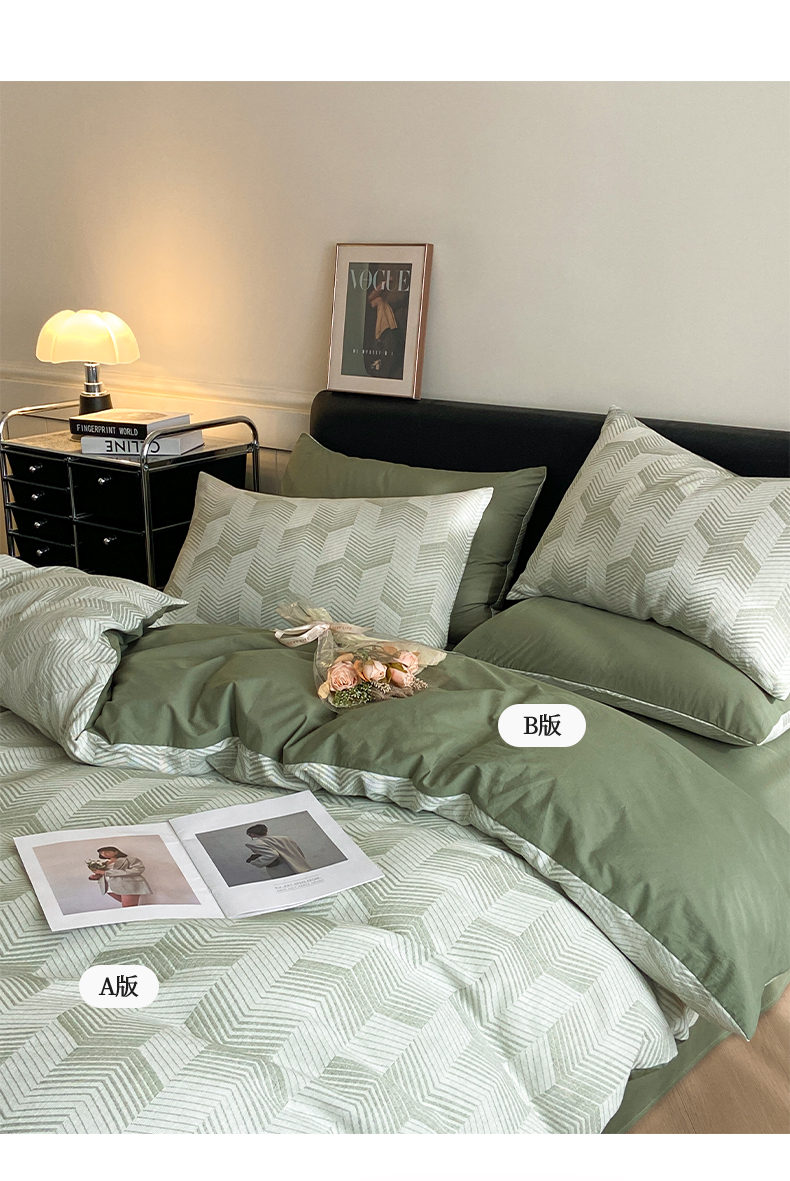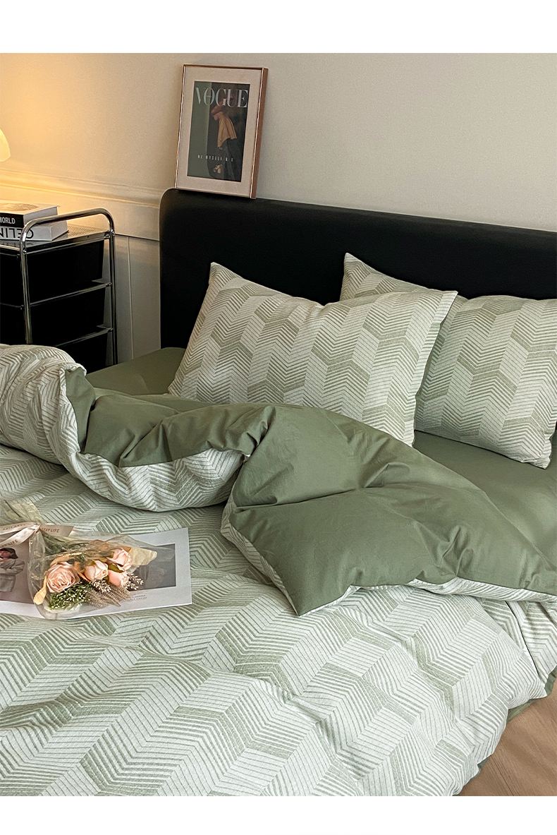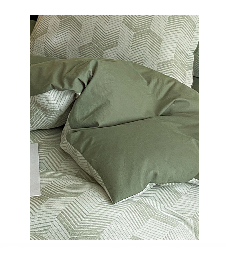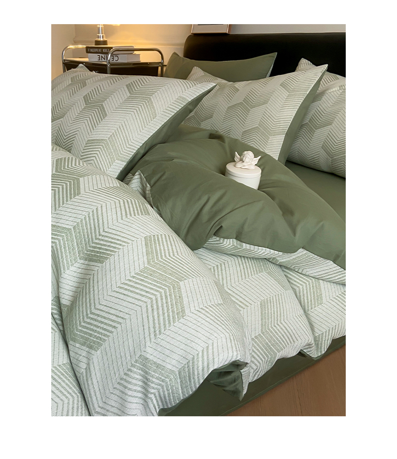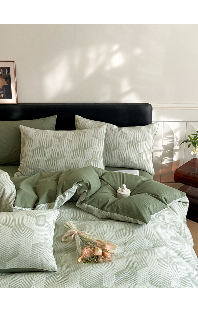 顶柔全棉三层纱空气层提花水洗棉撞色四件套-TJ1399