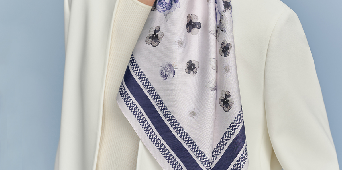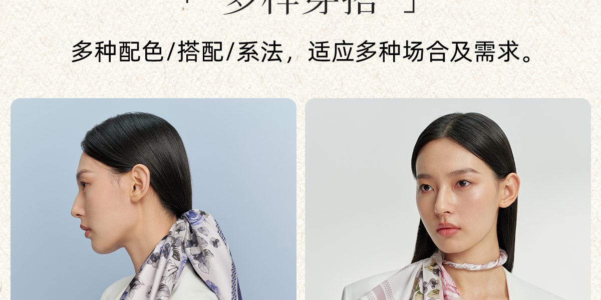 万事利“梦瑶”63厘米双面印花真丝中方巾