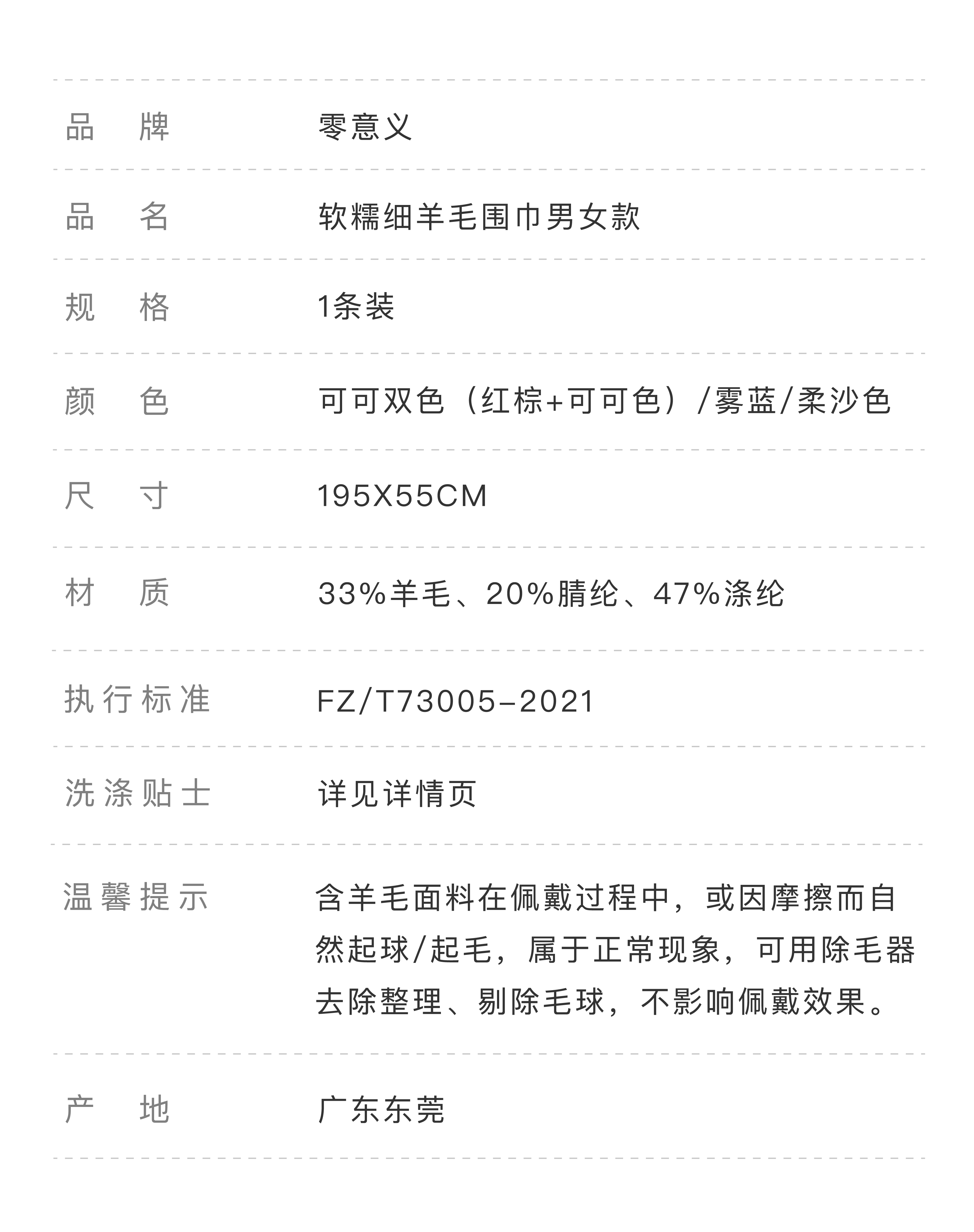 零意义·软糯细羊毛围巾男女款 195X55CM