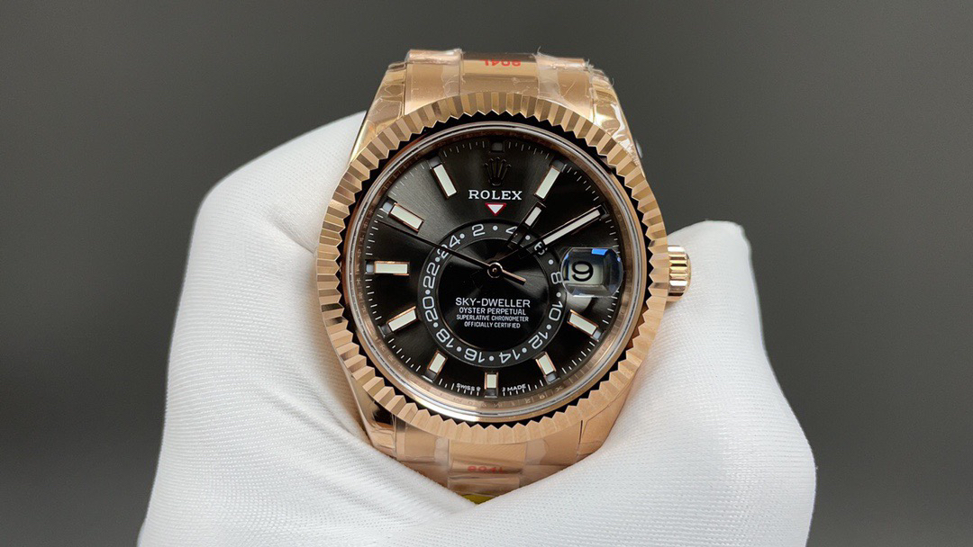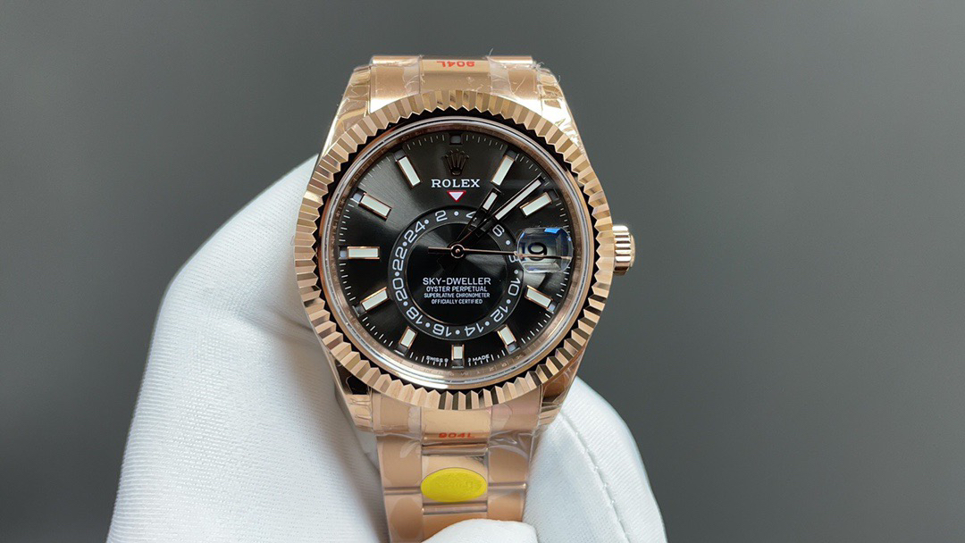 NOOB升级版 劳.力士Rolex Sky-Dweller 天行者!精彩细节: 【表壳】尺寸42毫米,沉稳可靠、雍容大度! 表圈采用劳力士Ring Command三角坑纹,旋转外圈可调转月份功能!