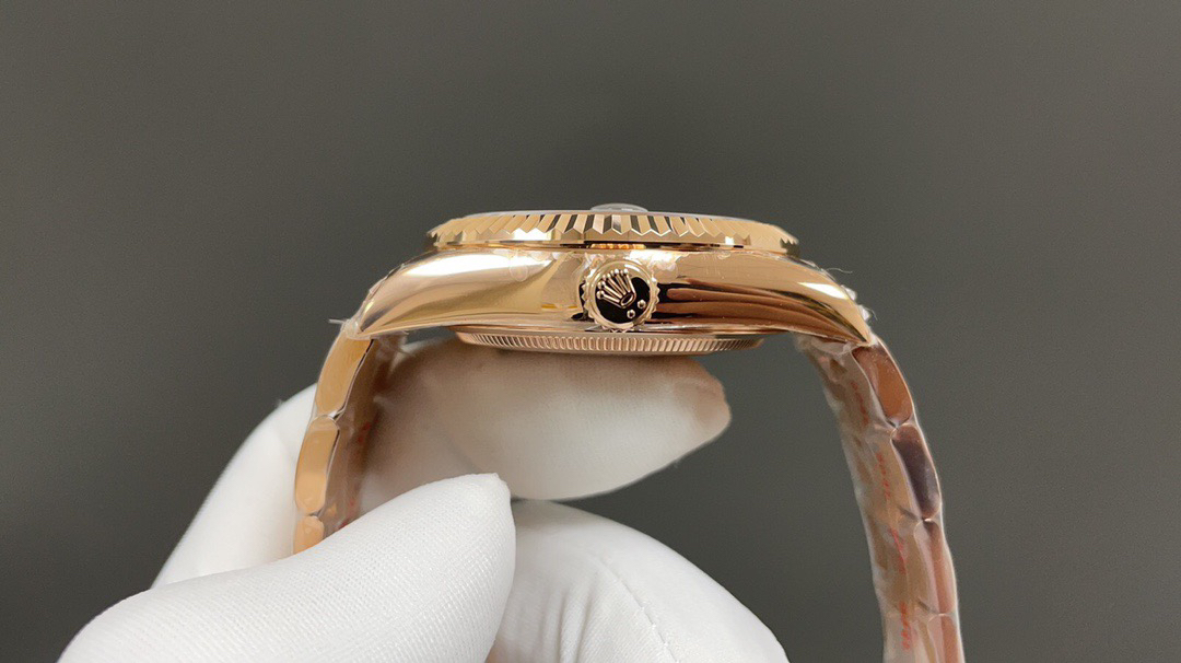 表圈采用劳力士Ring Command三角坑纹,旋转外圈可调转月份功能!