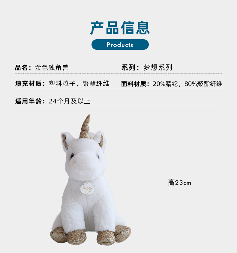 DOUDOU 金色独角兽-23cmDOUCHO2659玩偶