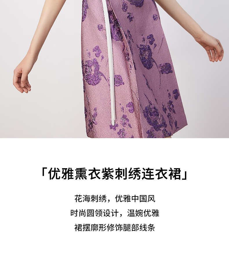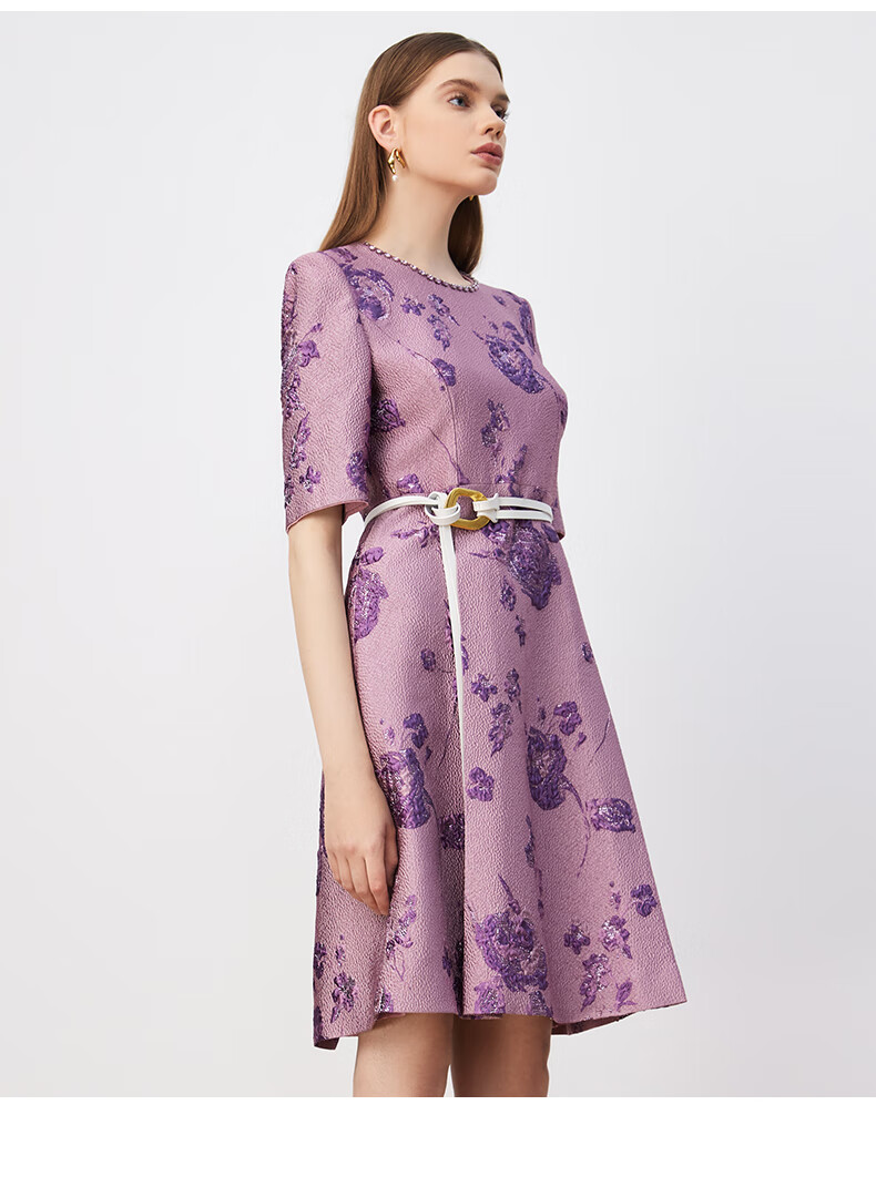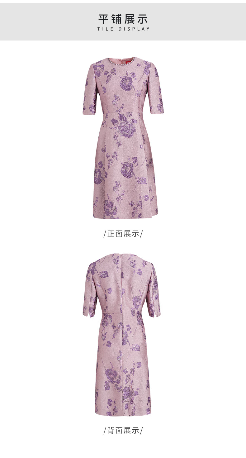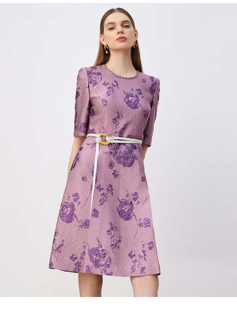 皮尔卡丹女装连衣裙圆领提花高级感五分袖通勤裙子P3329E3902F3