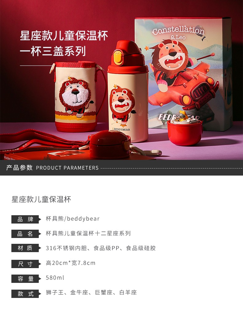 BEDDYBEAR/杯具熊 星座系列儿童保温杯 多色可选 580MLJPY带授权招加盟代理