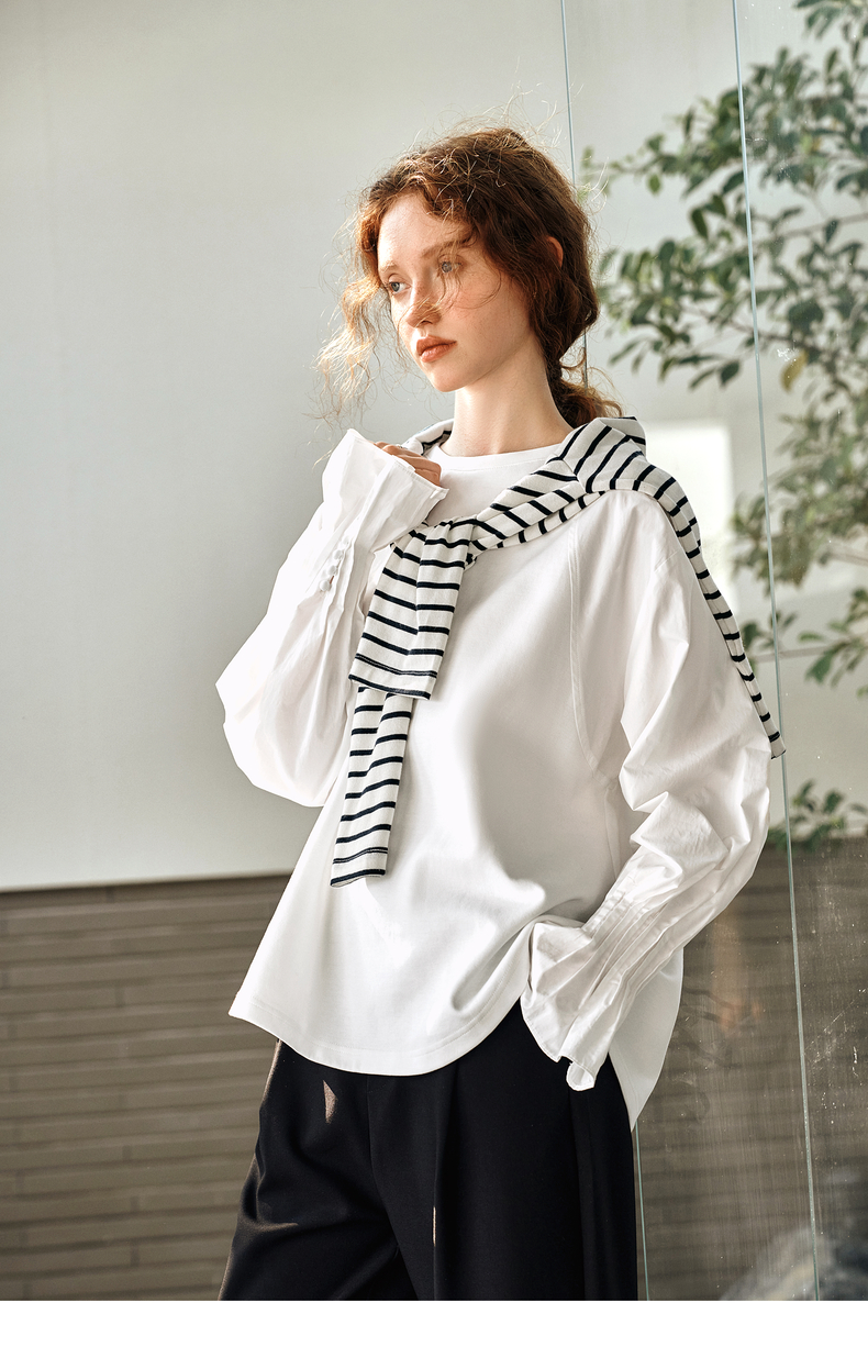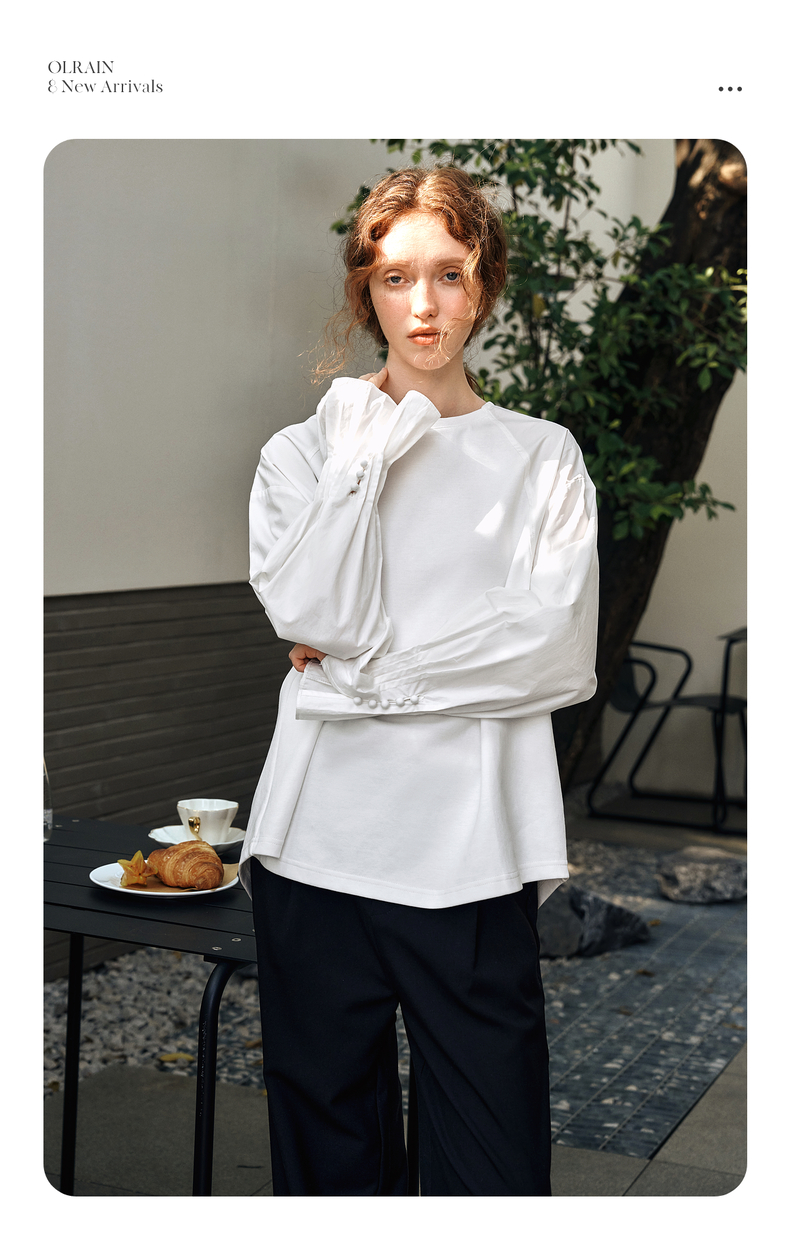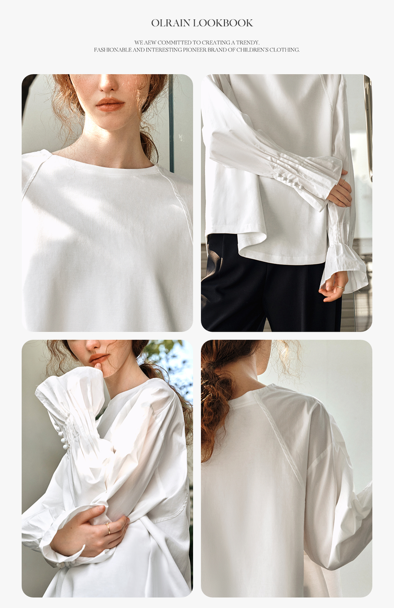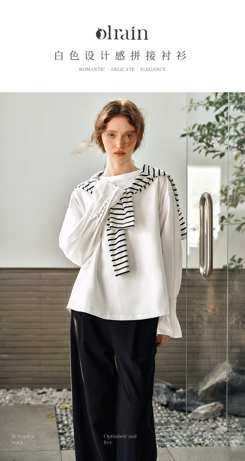 OLrain欧芮儿白色长袖衬衫女春季2025年新款设计感慵懒风拼接上衣