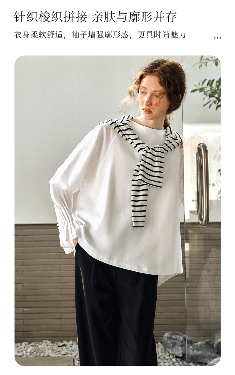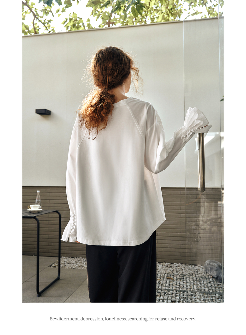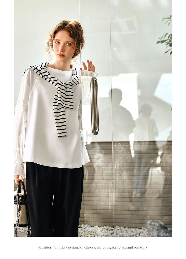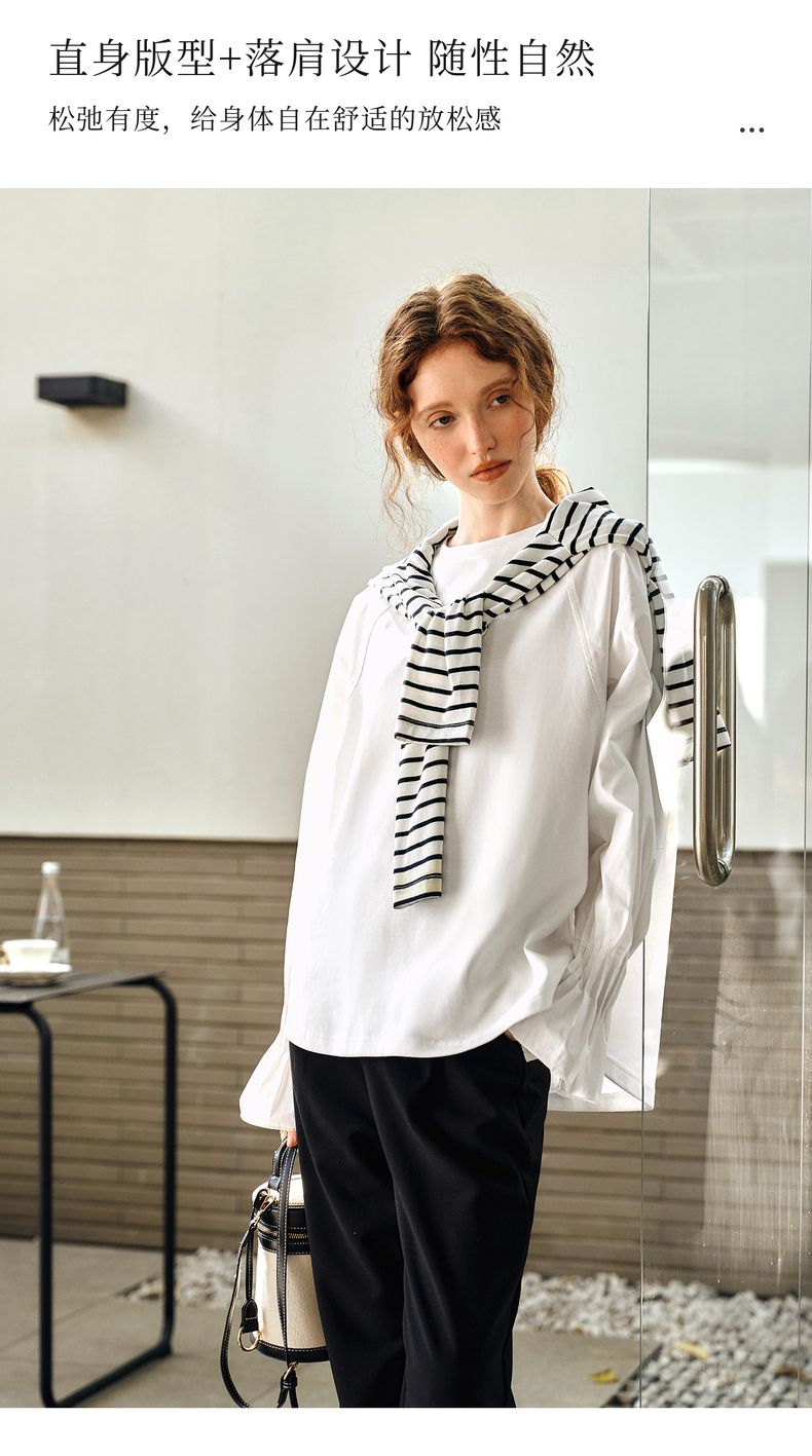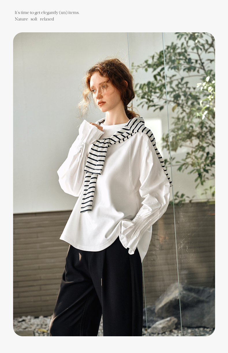 OLrain欧芮儿白色长袖衬衫女春季2025年新款设计感慵懒风拼接上衣