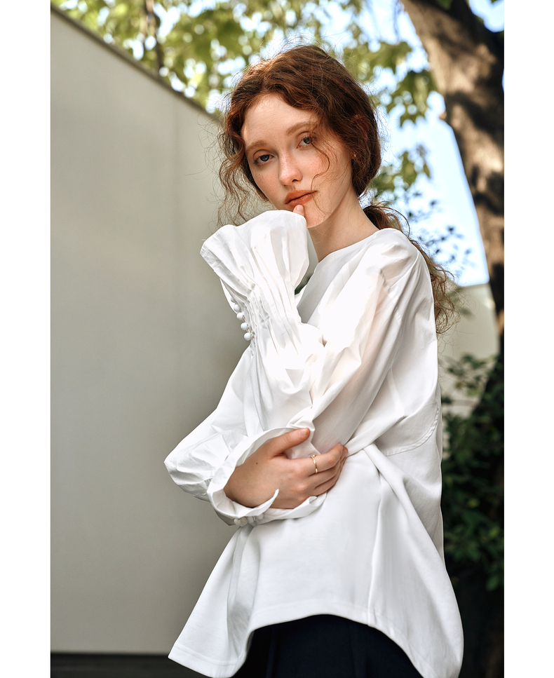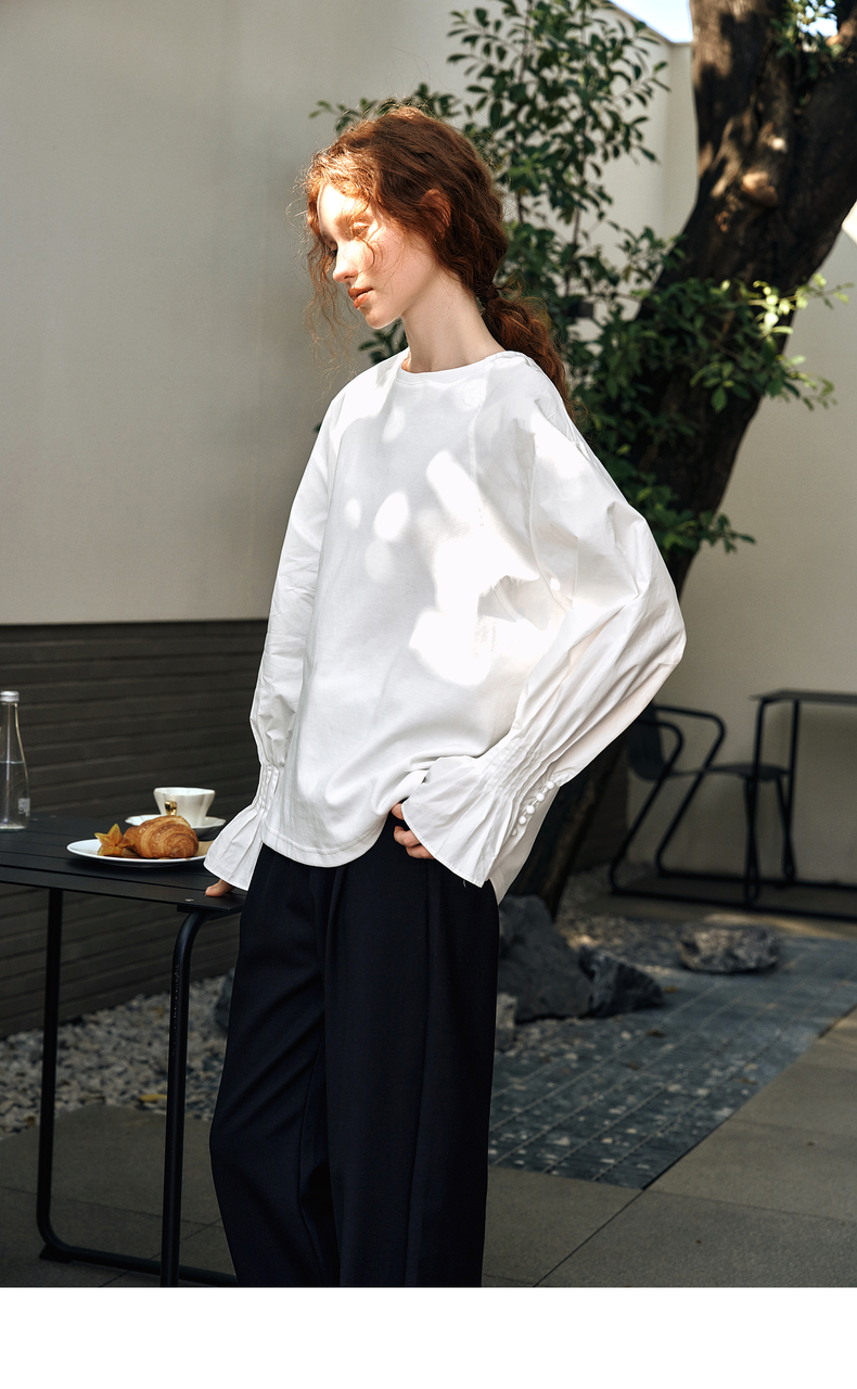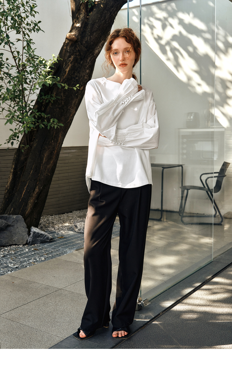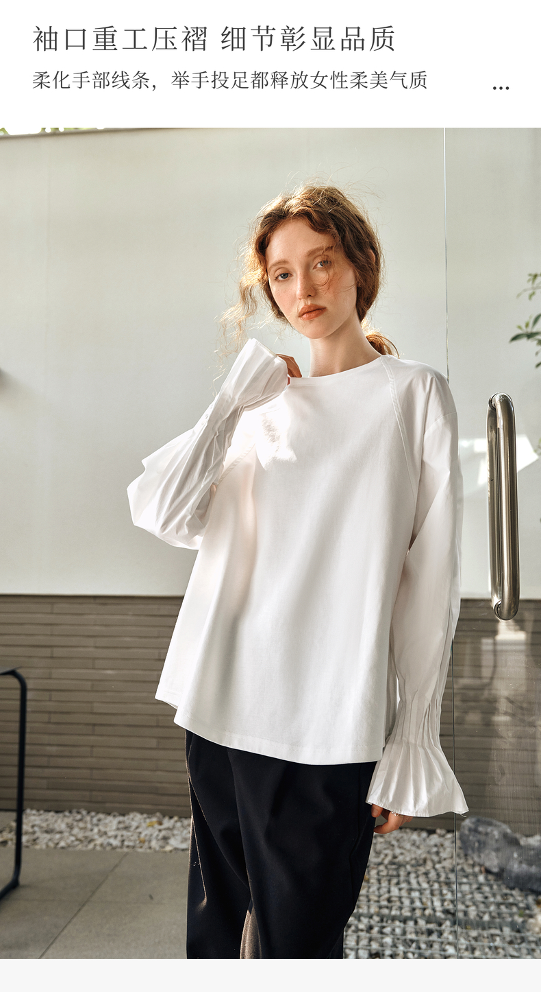 OLrain欧芮儿白色长袖衬衫女春季2025年新款设计感慵懒风拼接上衣