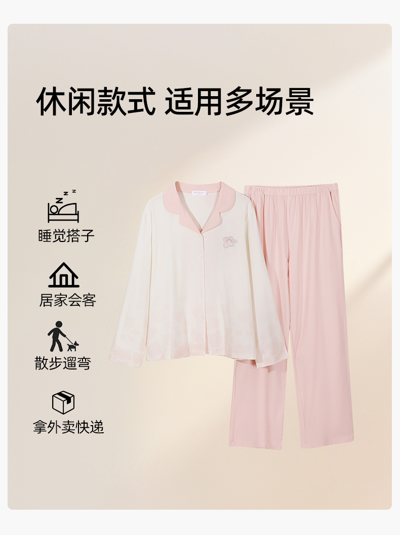 【商场同款】熳洁儿 早秋新款天丝棉开衫套装花瓣领女士家居服25703253
