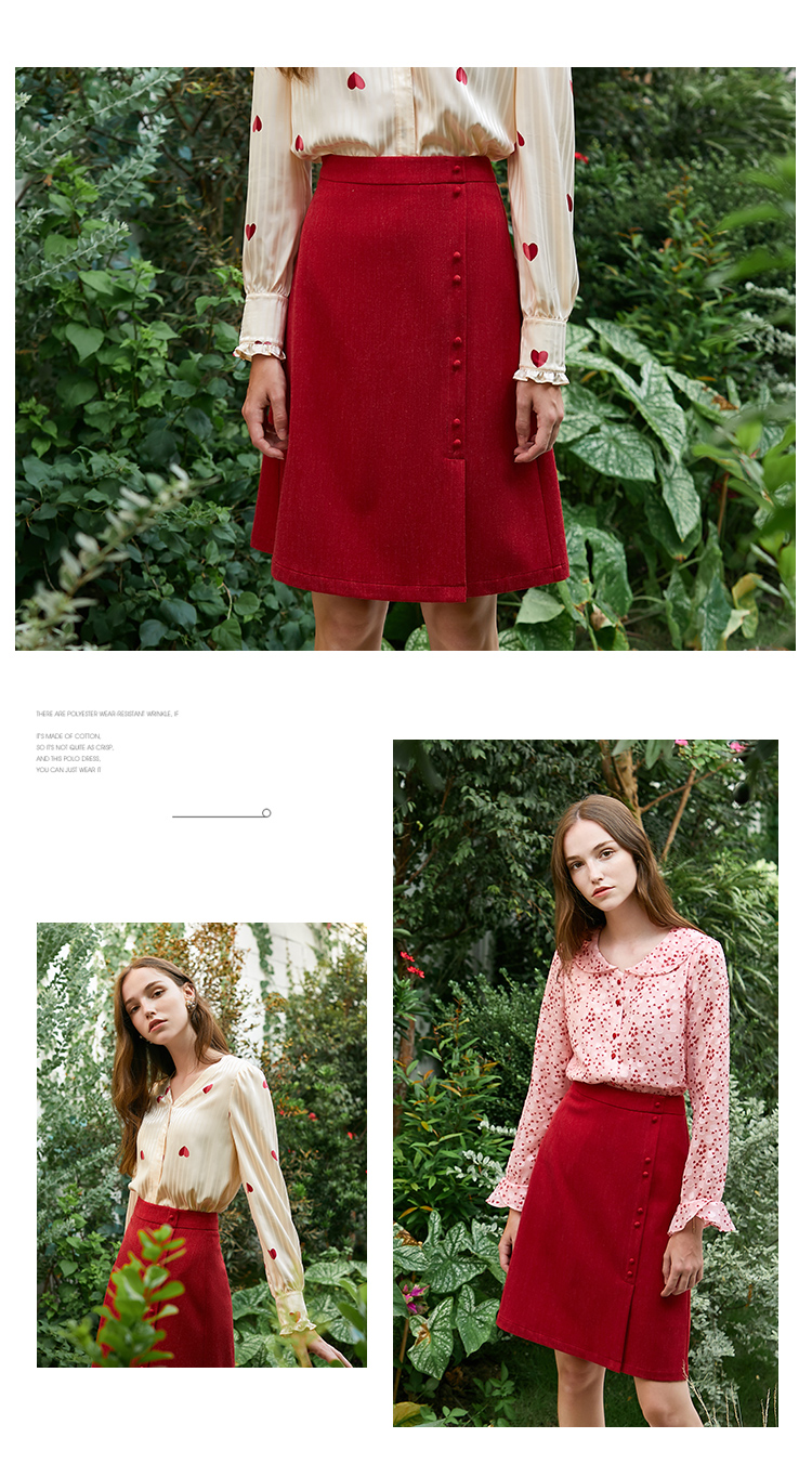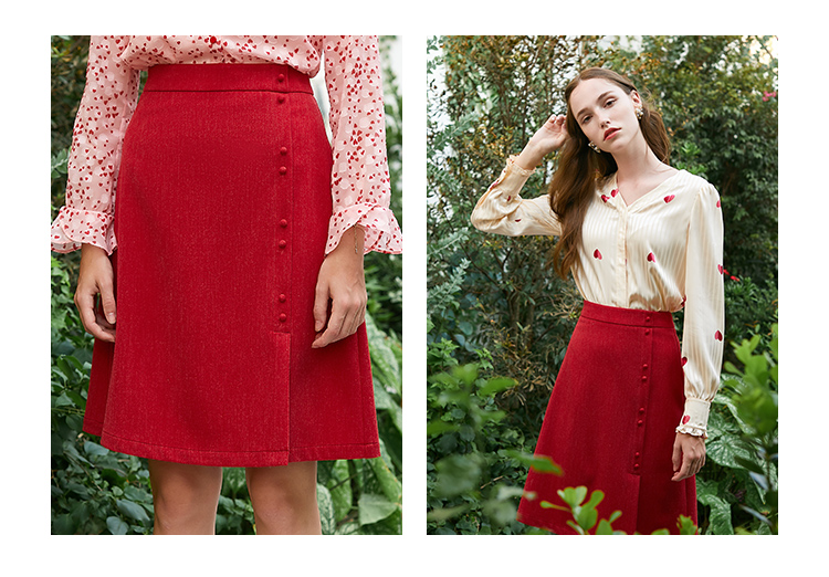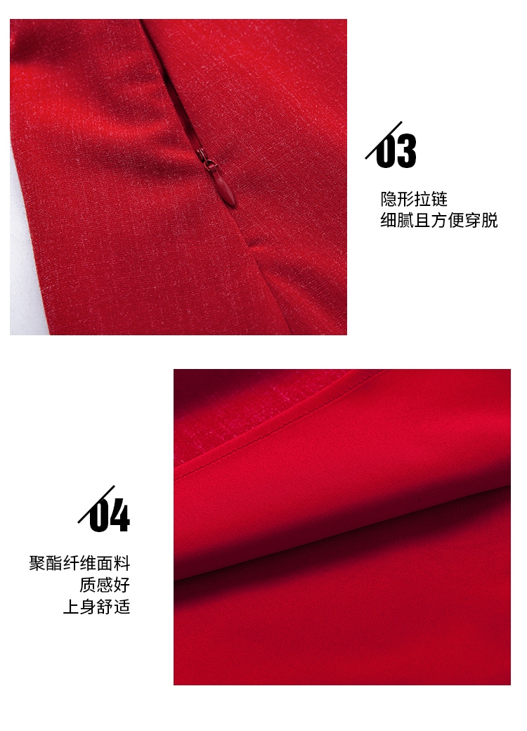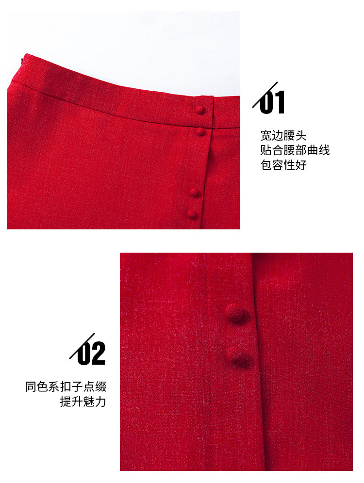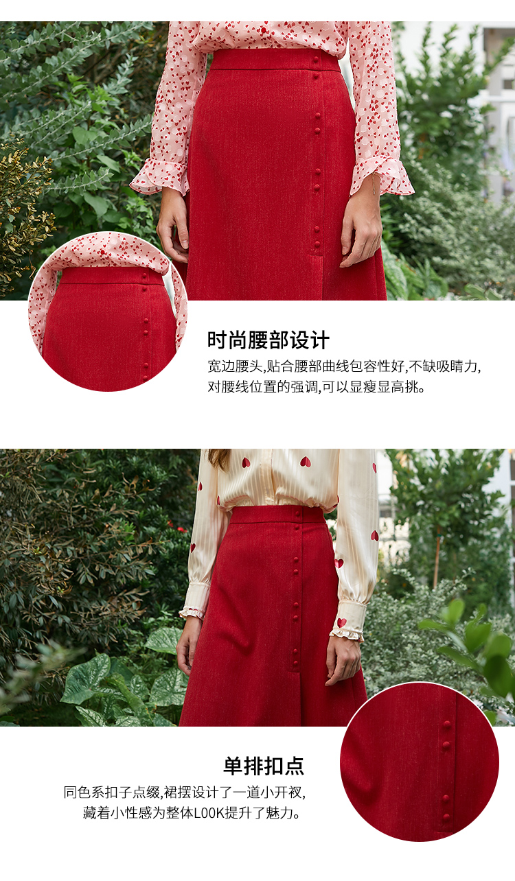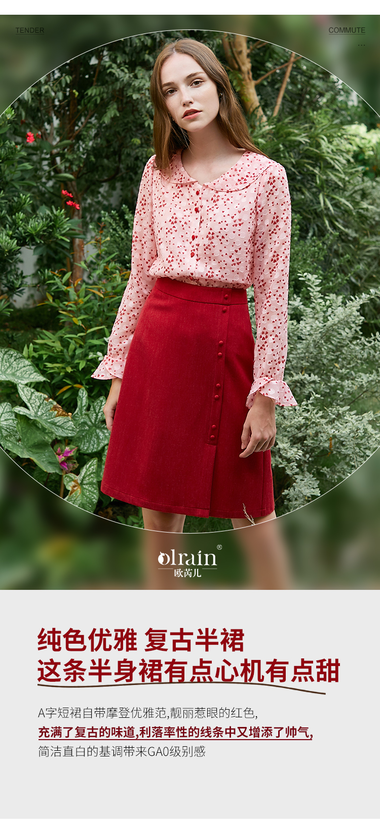 欧芮儿新款高腰显瘦红色半身裙女中长款不规则包臀裙
