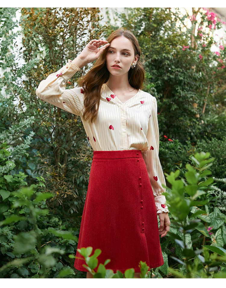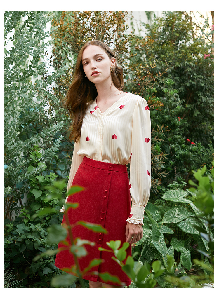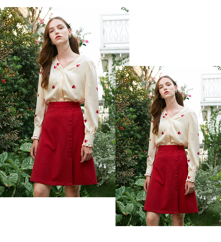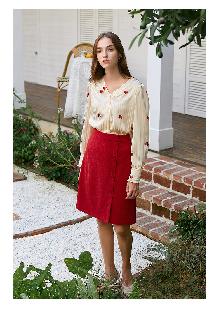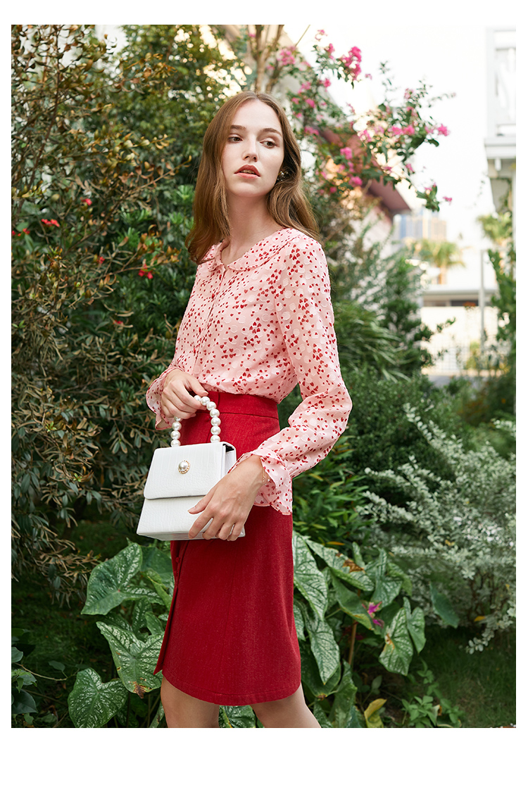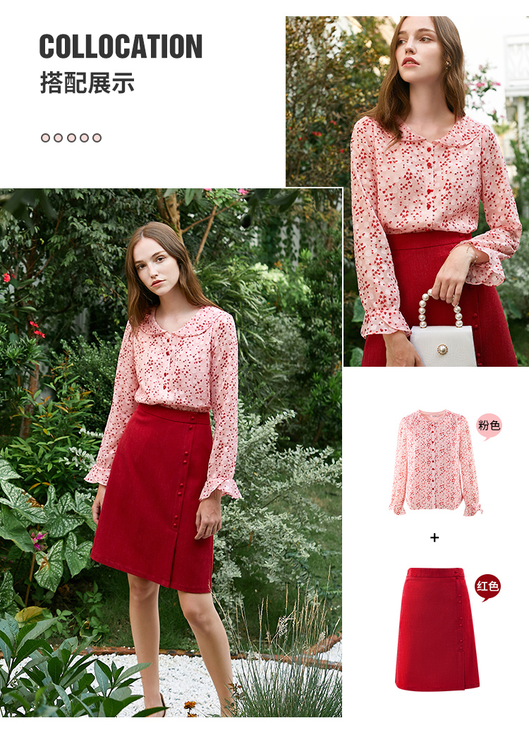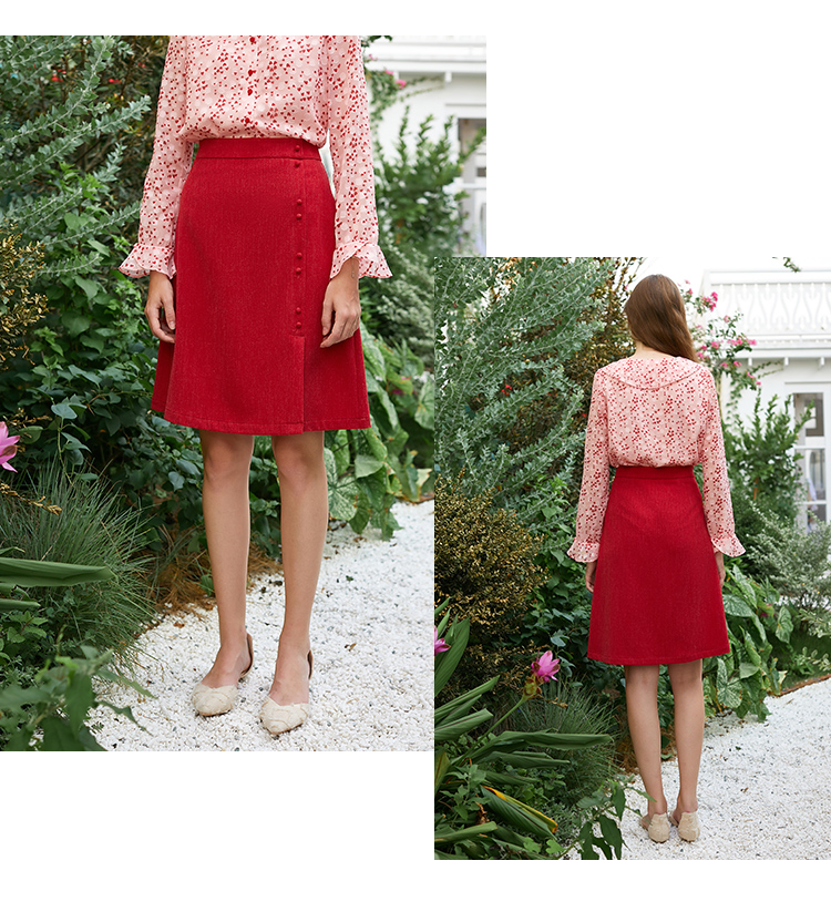 欧芮儿新款高腰显瘦红色半身裙女中长款不规则包臀裙