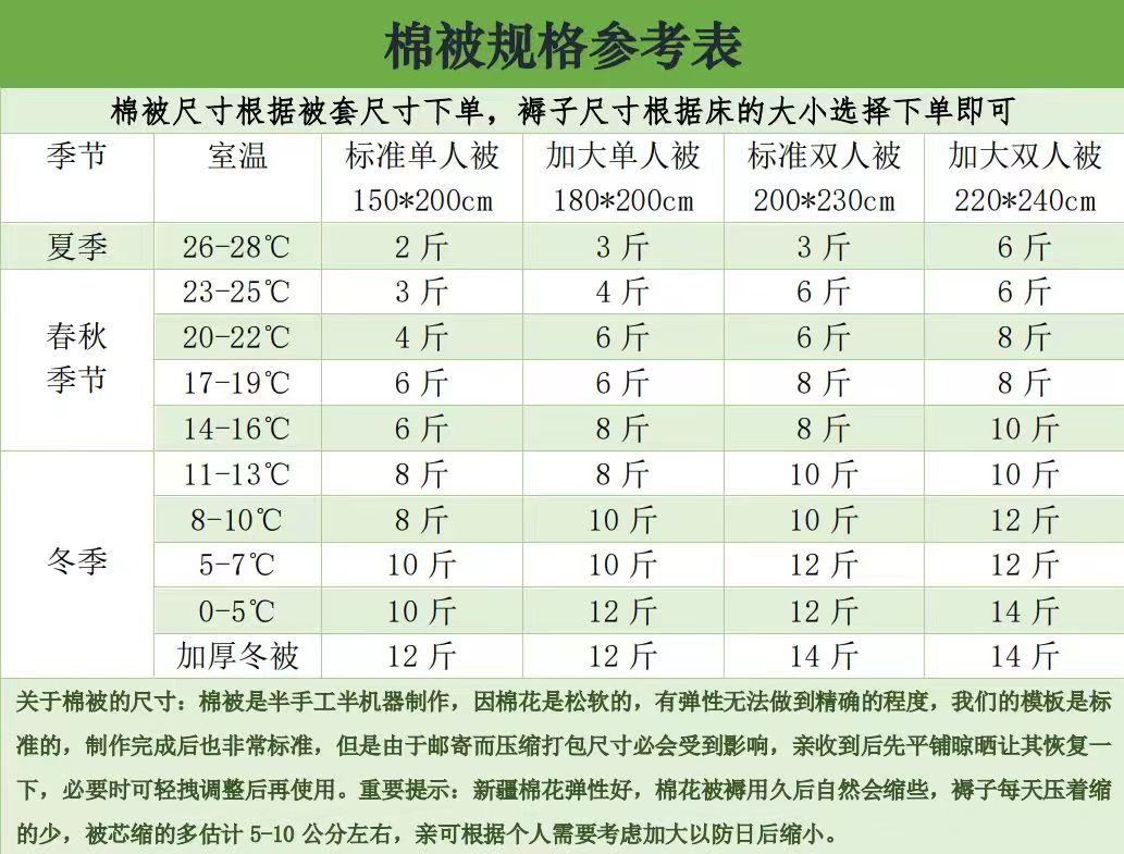 (2斤可做:1.5*2、1.8*2两个尺寸,3斤可做:1.5*2、1.8*2、2*2.3三个尺寸,4斤可做:2.2*2.4不包边)
