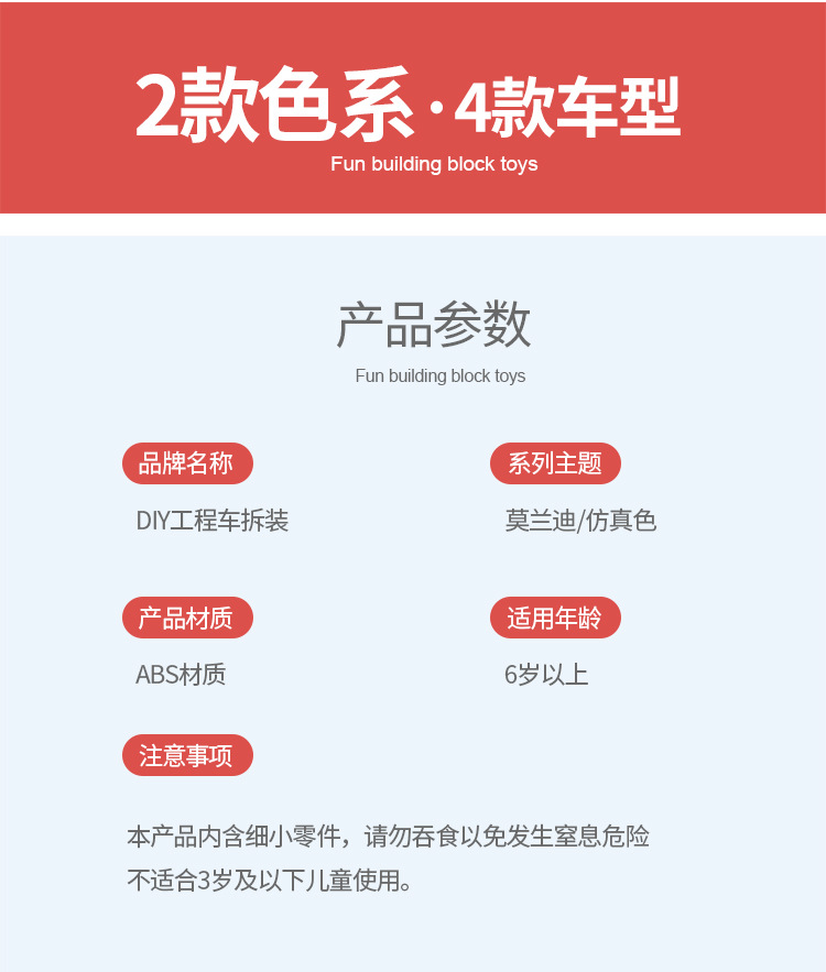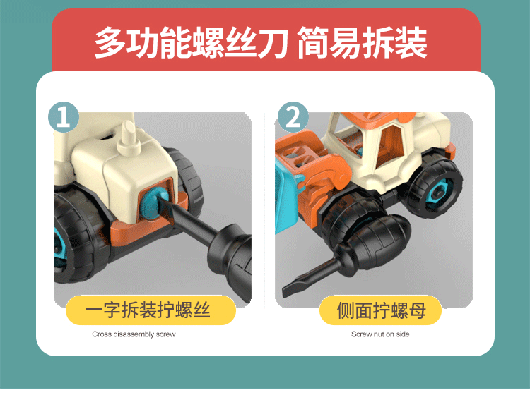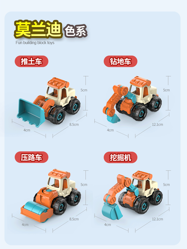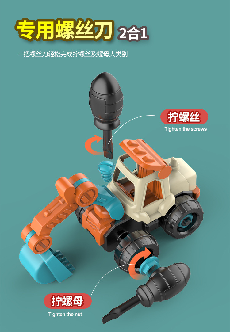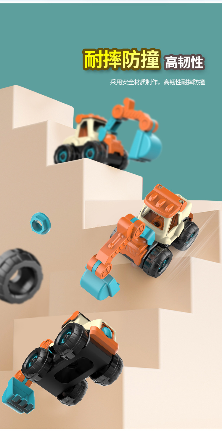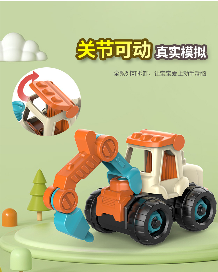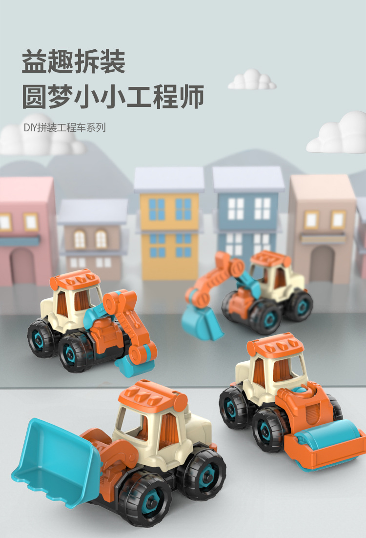【9.9元4件拆装工程车】DIY可拆装工程车 玩具套装 男孩螺丝组装 儿童益智拆卸 仿真滑行模型
