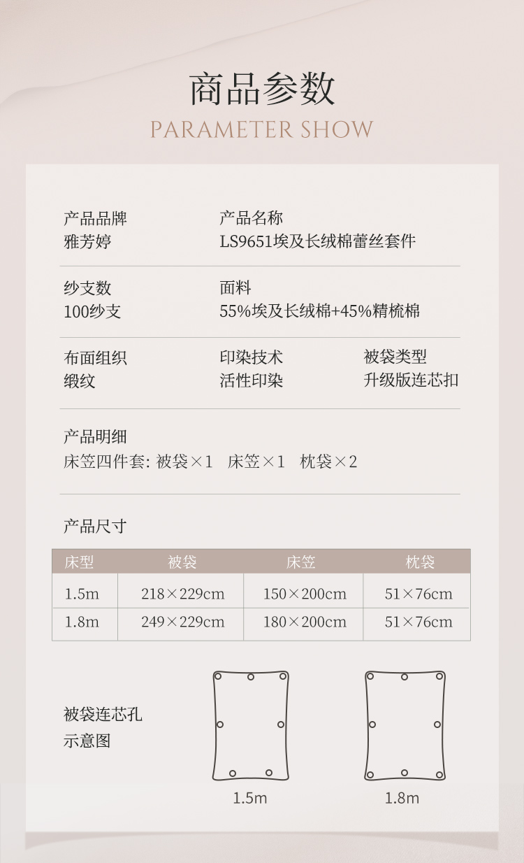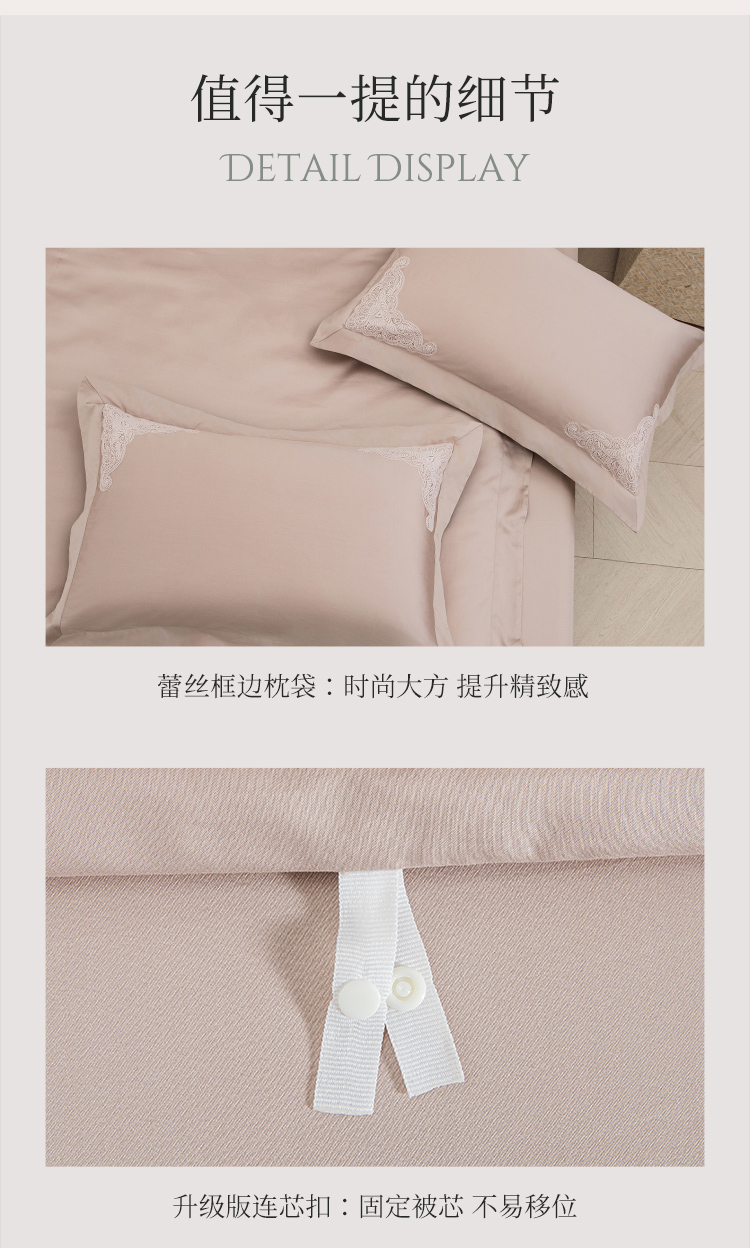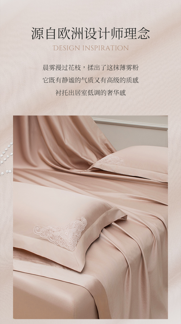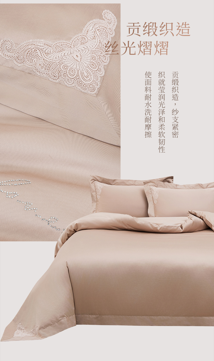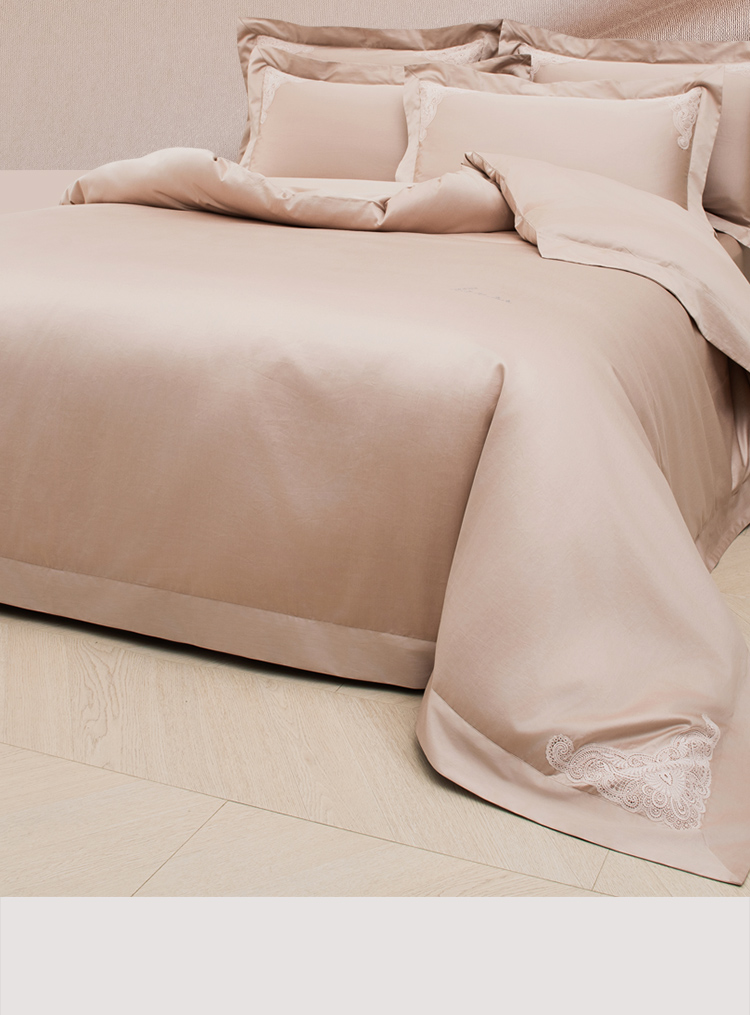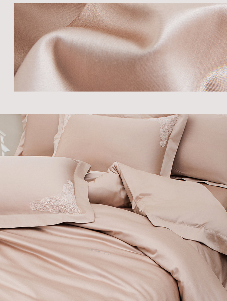 雅芳婷100S埃及长绒棉床上四件套床笠款全棉简约轻奢蕾丝被套套件