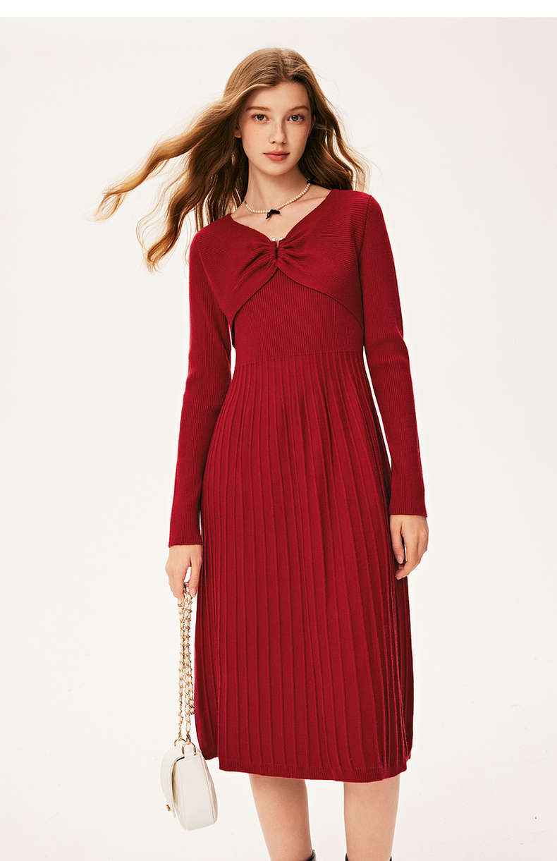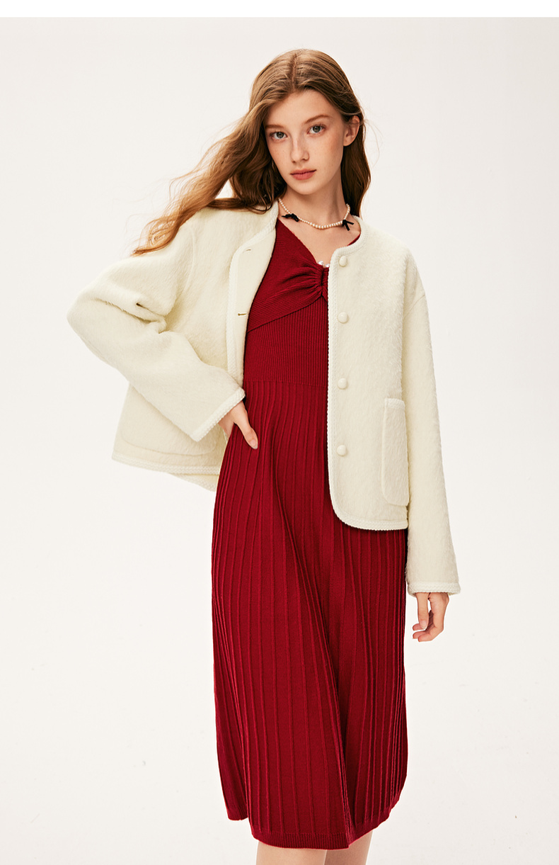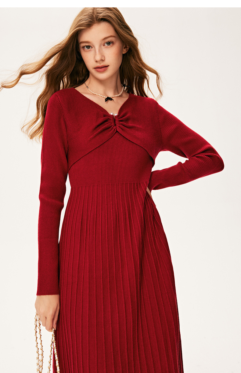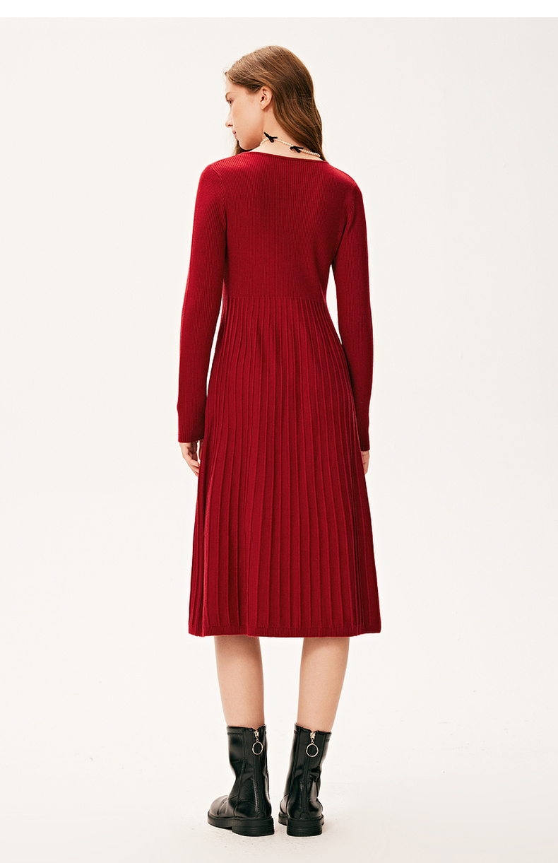 【严选】诗凡黎冬特色领型金属珍珠配饰设计针织连衣裙7E9393931