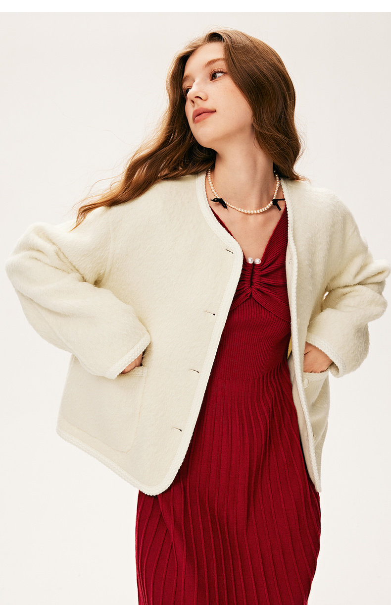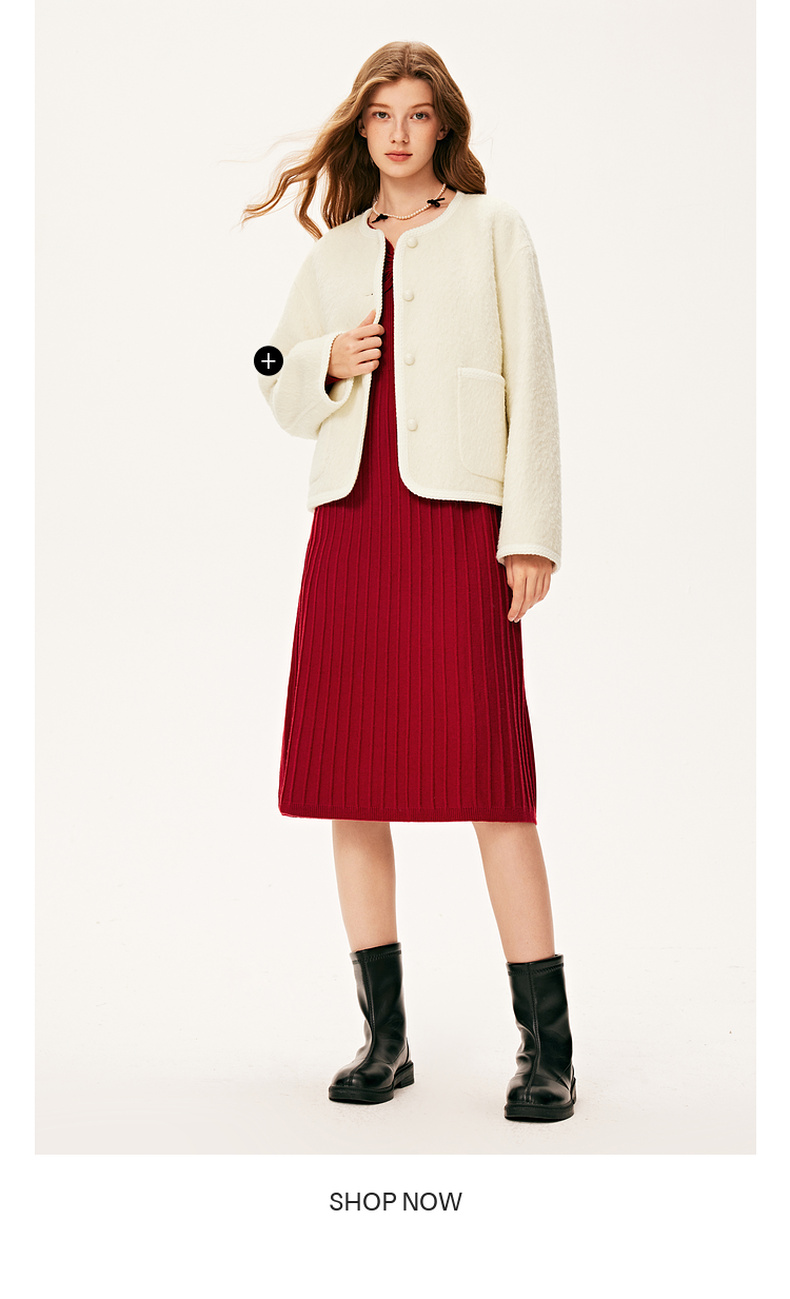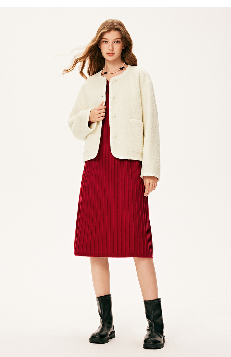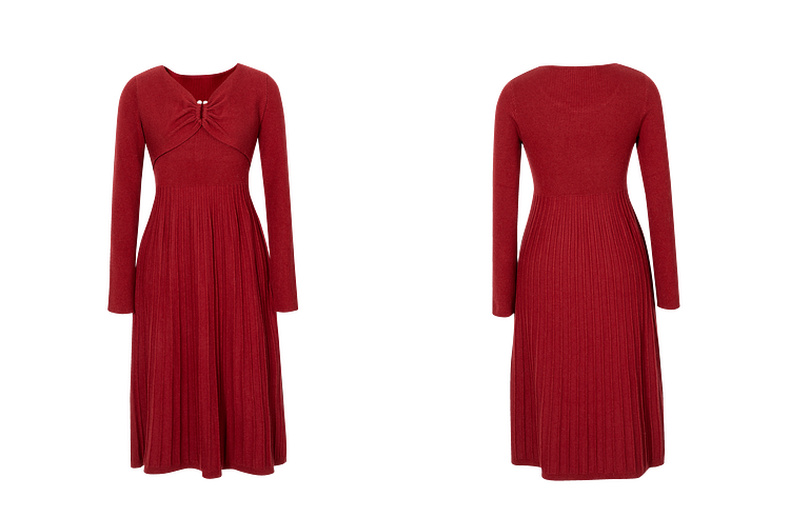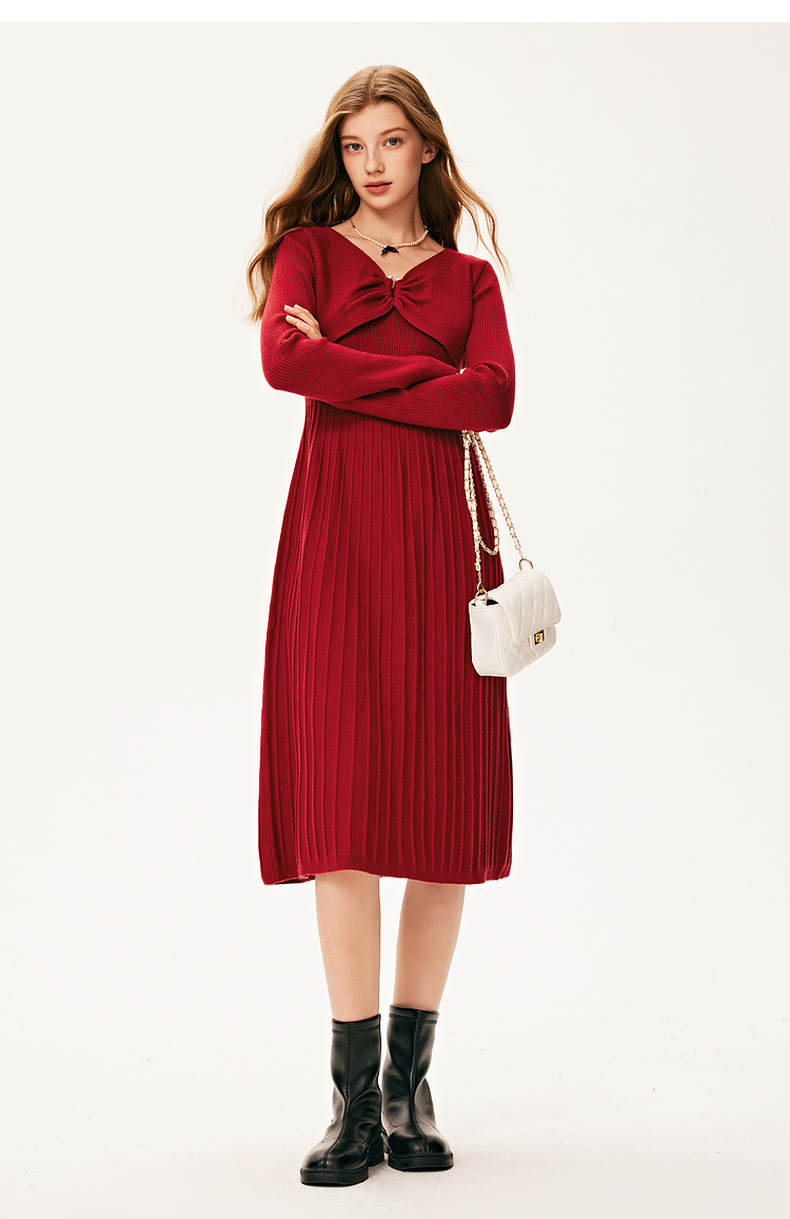 【严选】诗凡黎冬特色领型金属珍珠配饰设计针织连衣裙7E9393931