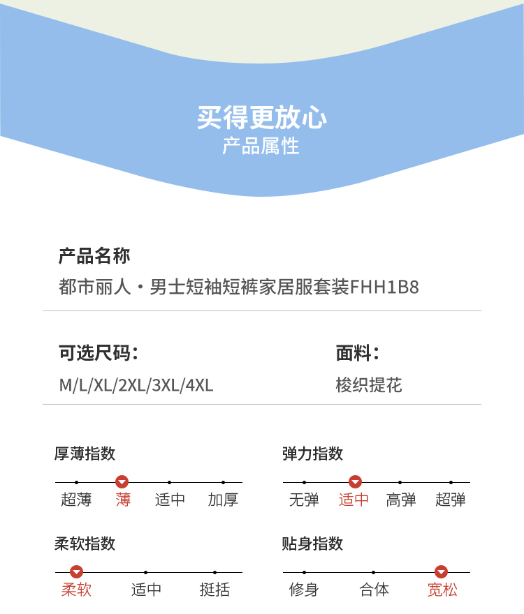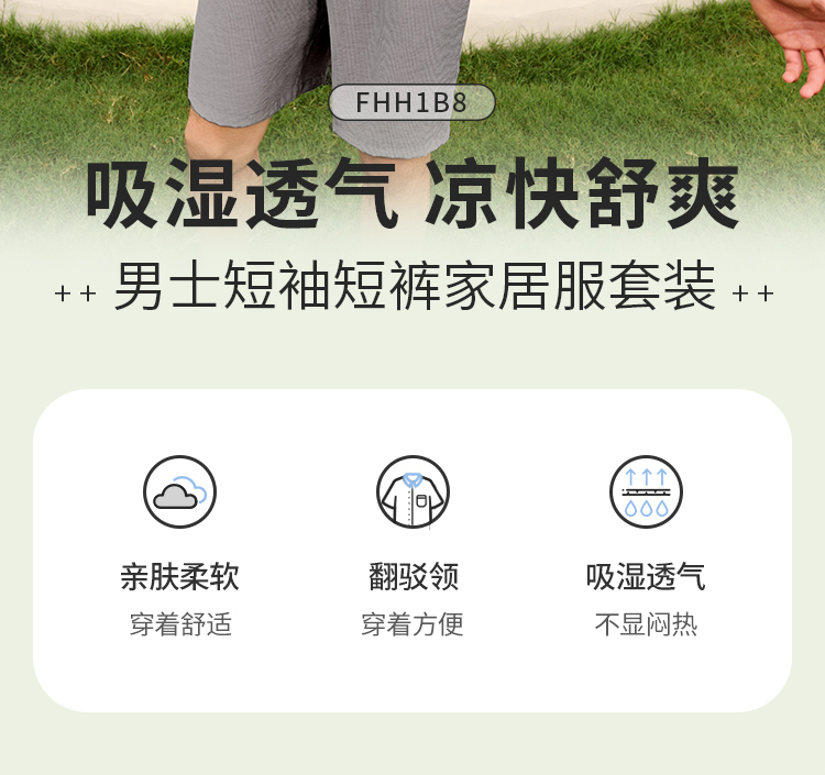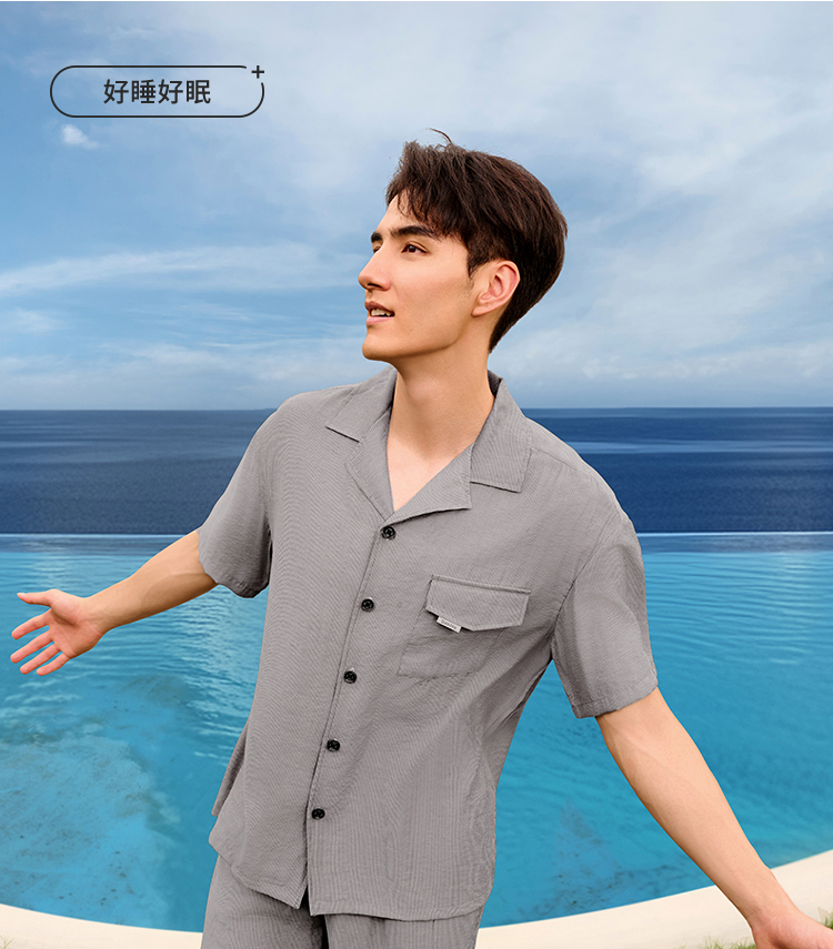 都市锋尚男士梭织棉短袖套装薄梭织提花生活家居无短袖类FHH1B8