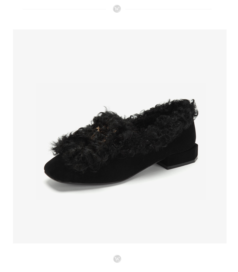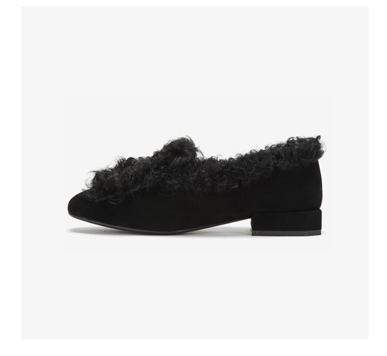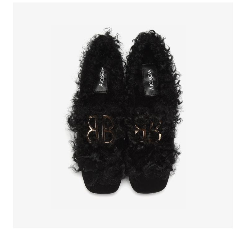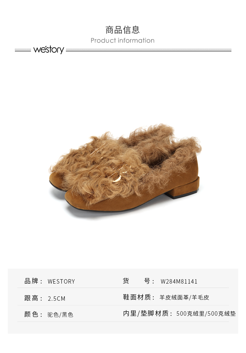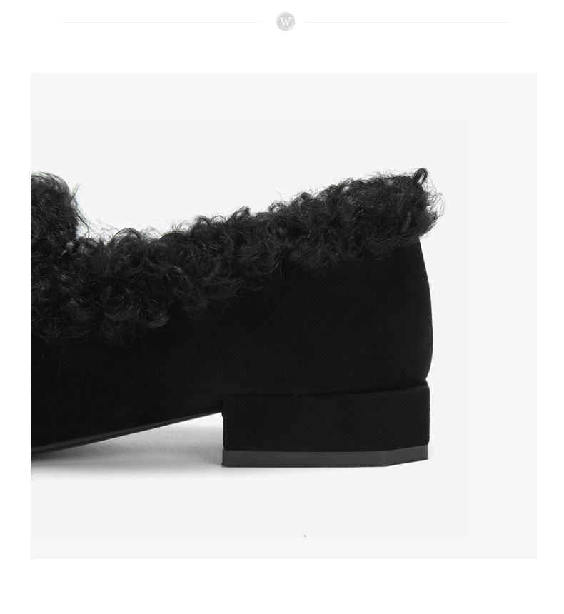 westory冬季新款毛毛鞋内里加绒低跟单鞋舒适女鞋W284M81141