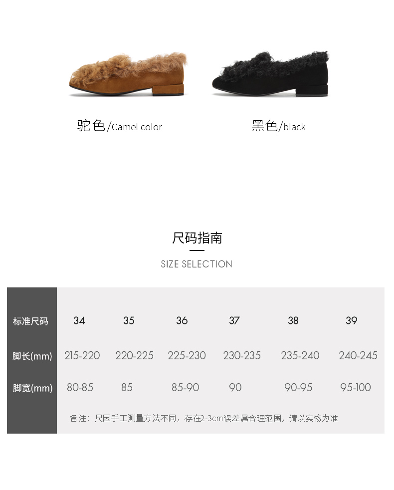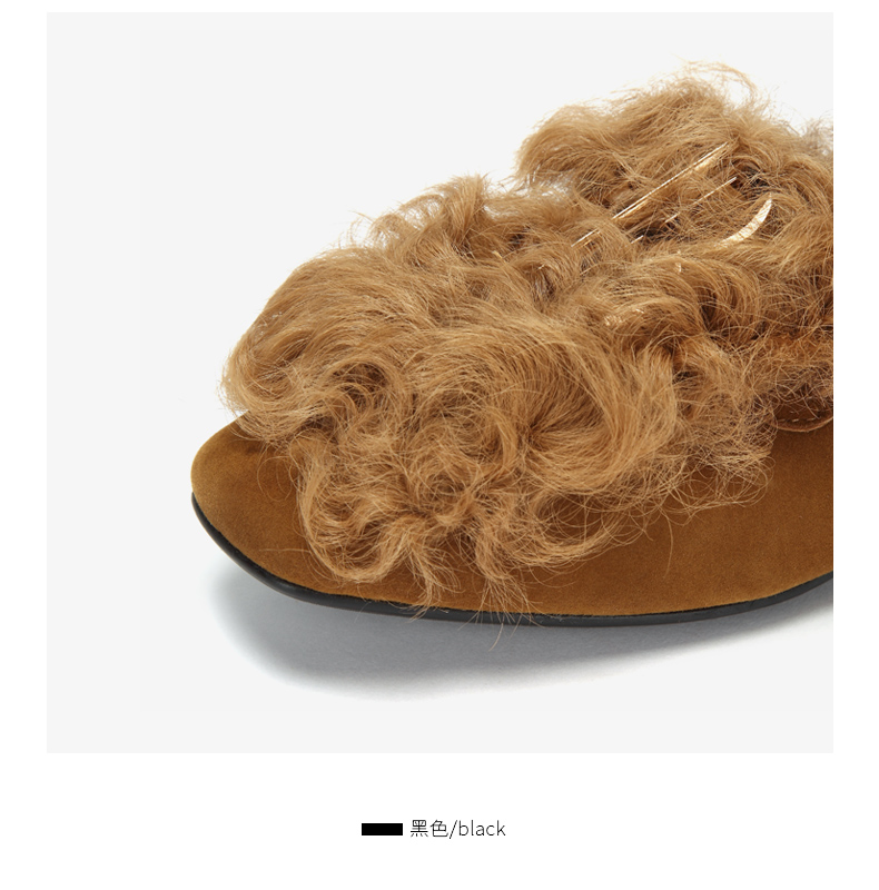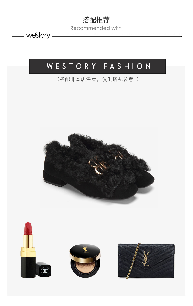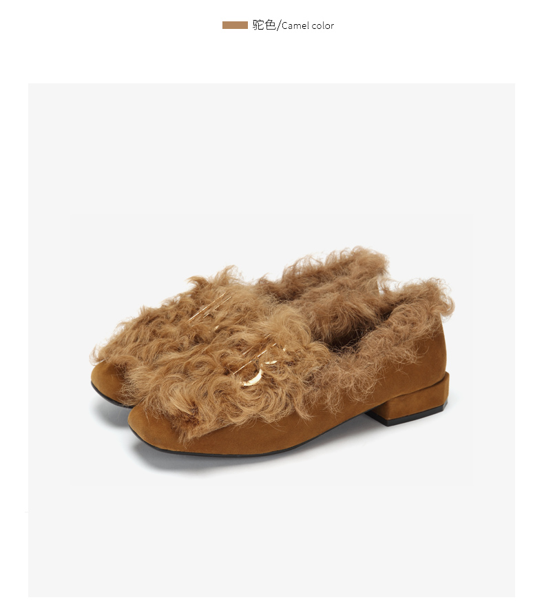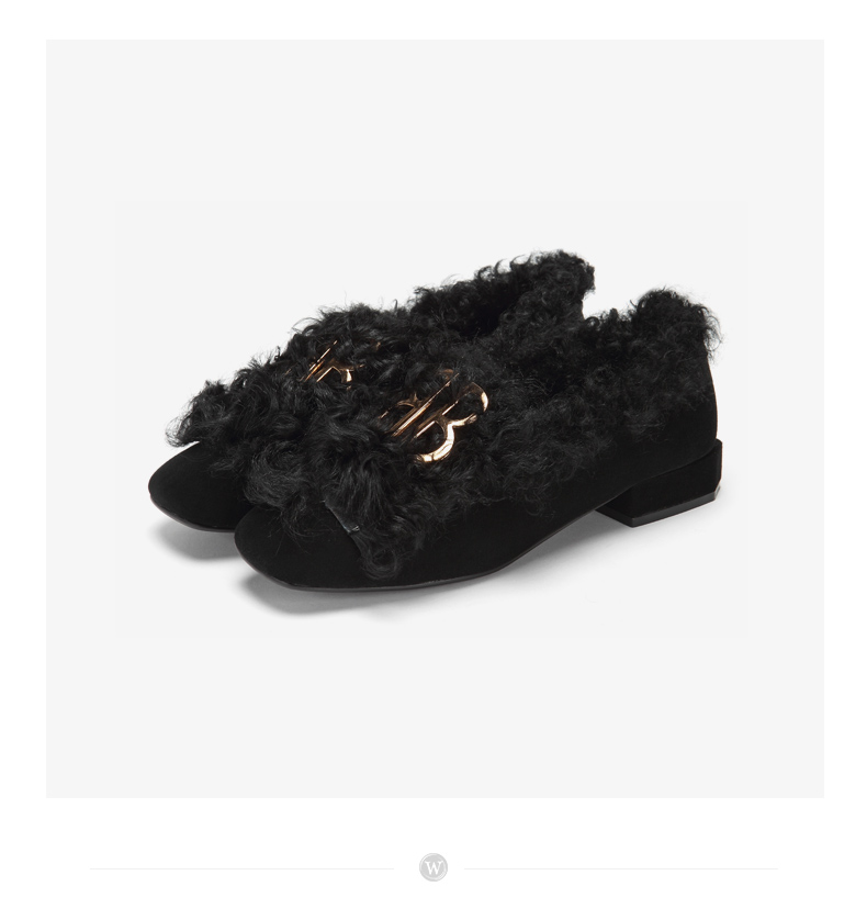 westory冬季新款毛毛鞋内里加绒低跟单鞋舒适女鞋W284M81141