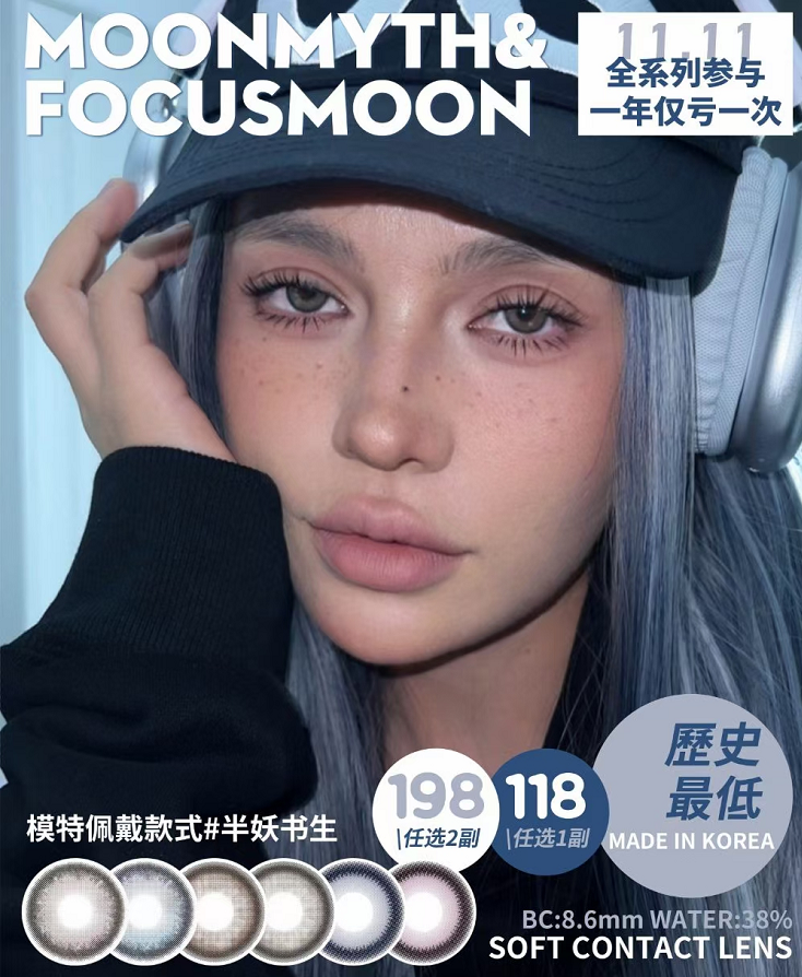 【小红书推荐款】focus moon 水光棱镜/年抛/直径14.5/着色13.8,118/一副,198/两副(商品详情任选),最高度数有1000