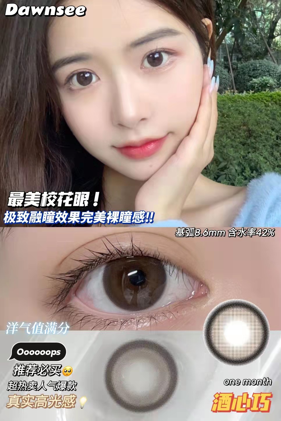 【小红书推荐款】dawnsee️瞳恩,雾漫褐棕 ,月抛/直径14.5/着色13.7,88/两副,128/三副,158/四副,下单备注款式度数,一副含两片(可以不同度数哦)