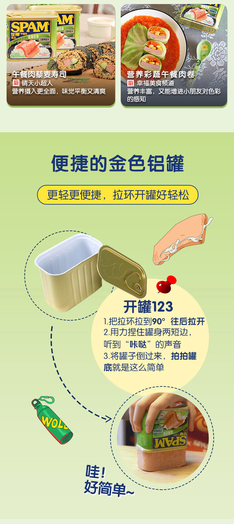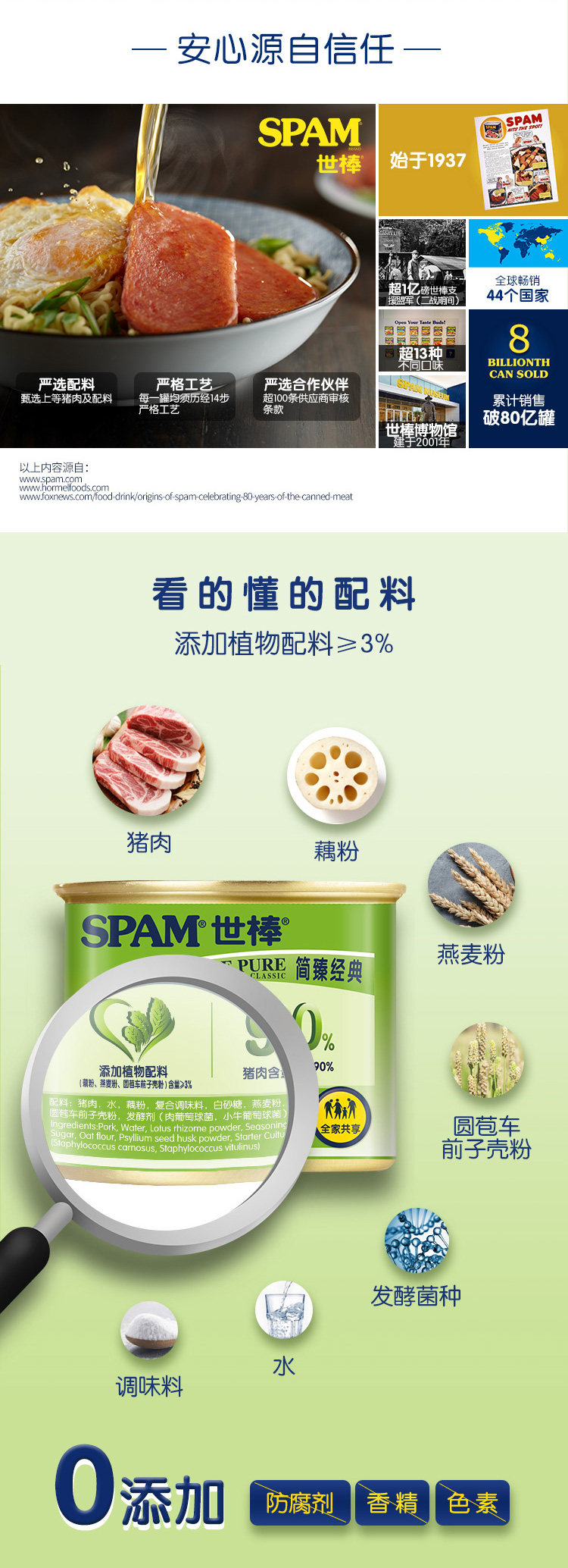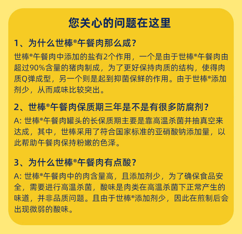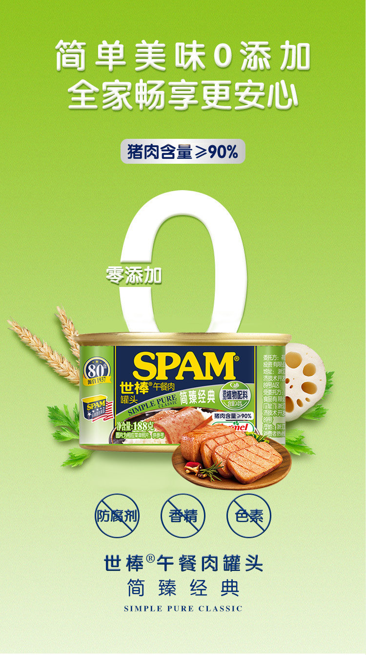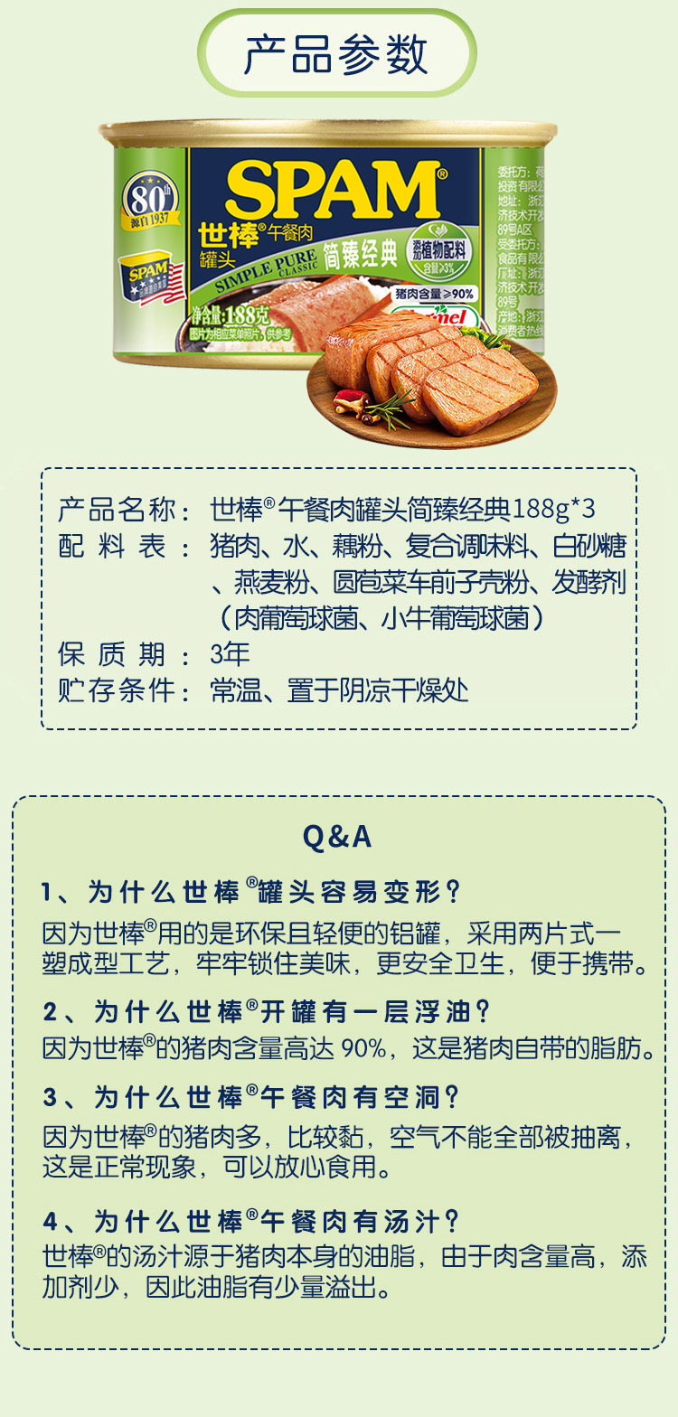 荷美尔SPAM世棒午餐肉罐头简臻经典188g*3罐猪肉火腿早餐火锅速食