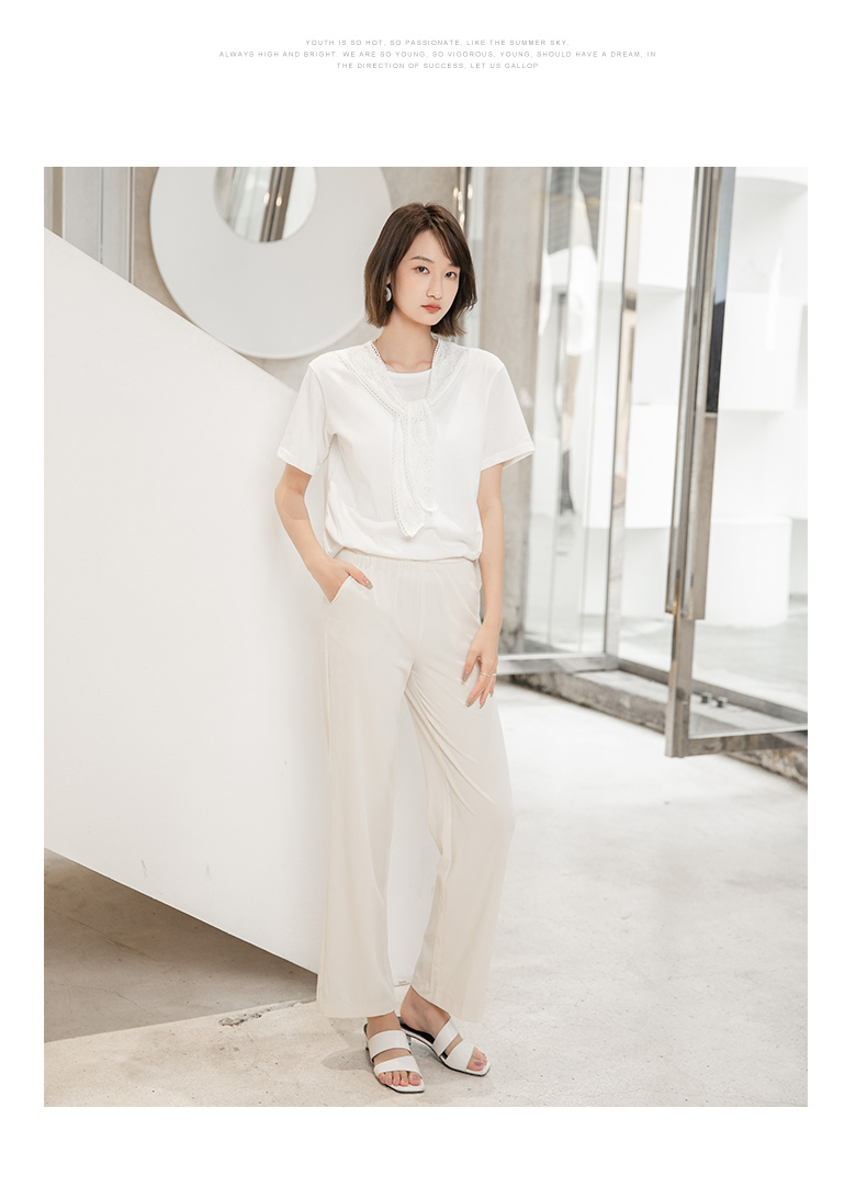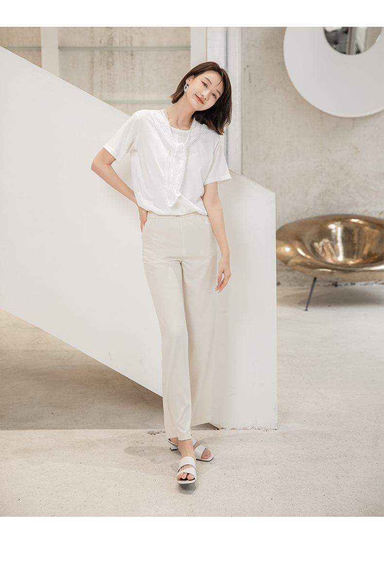 NUTS商场同款夏季纯色简约气质高腰直筒显瘦休闲长裤221073260