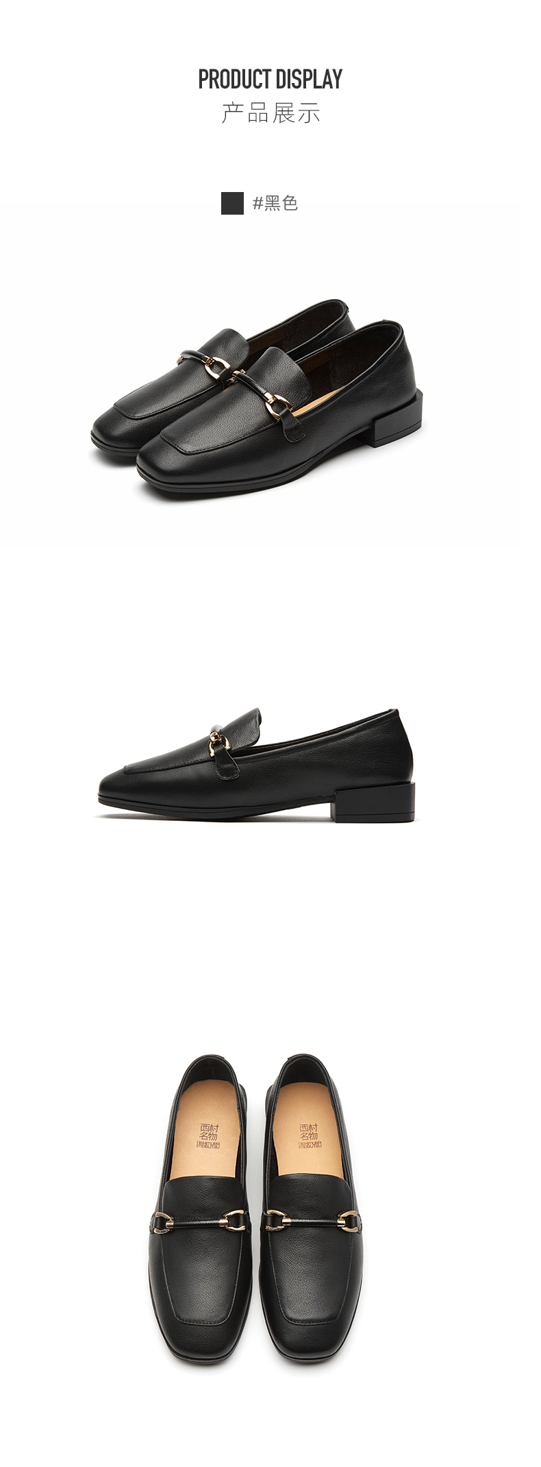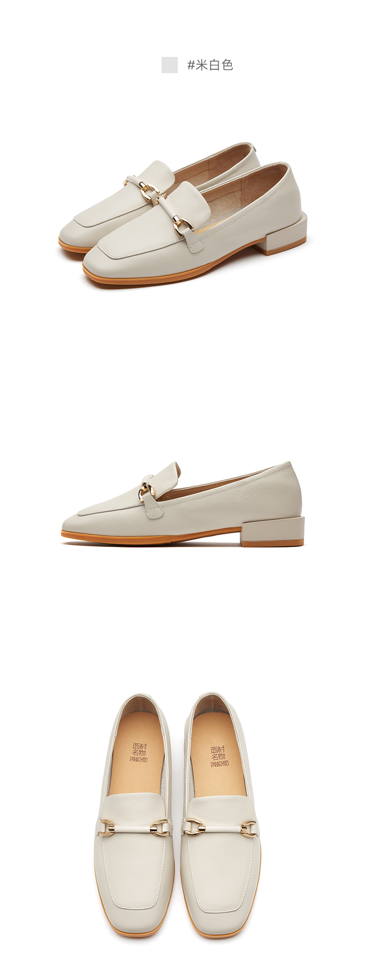 西村名物2021春季新款女鞋英伦方头中口乐福鞋舒适休闲单鞋T21AM13101