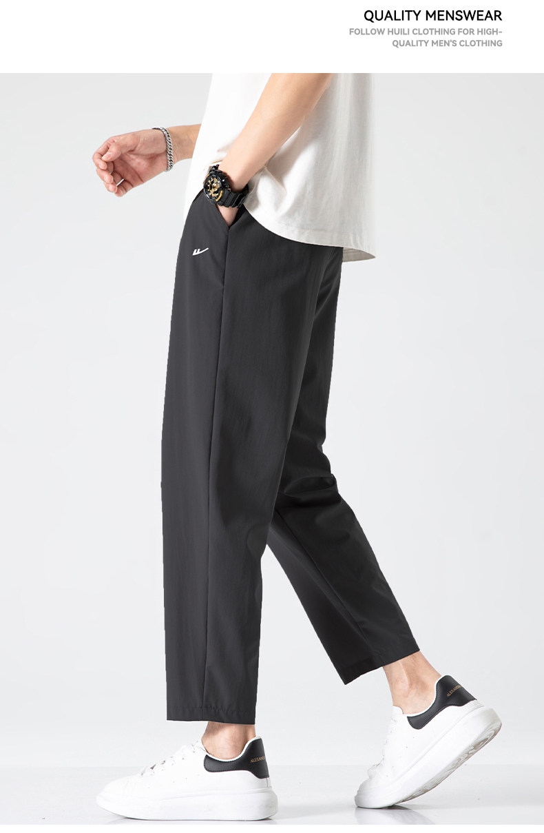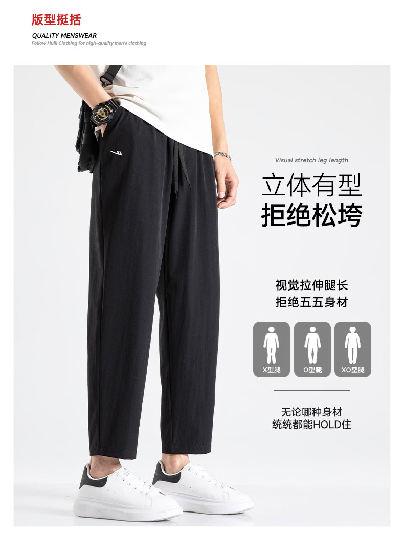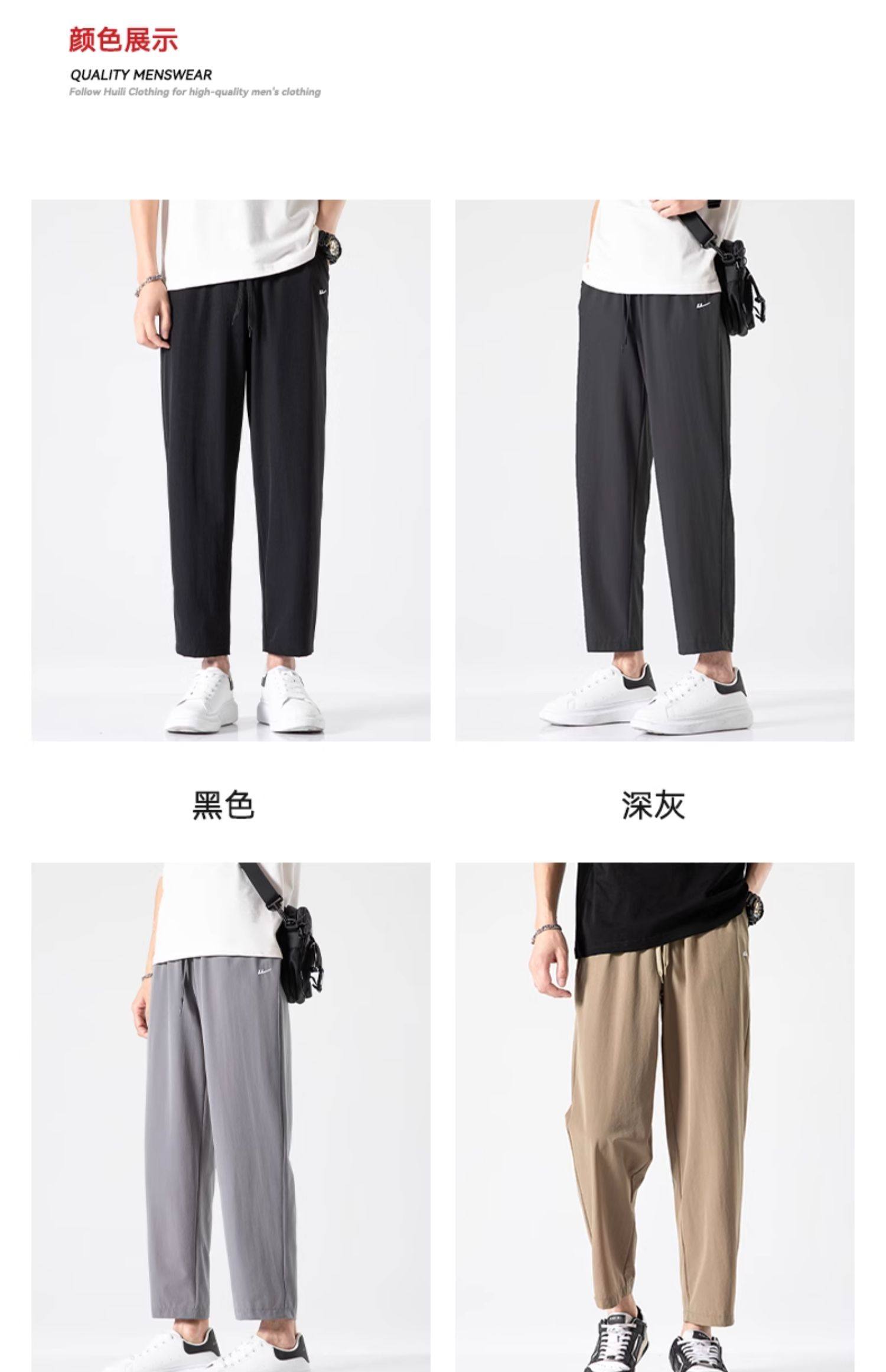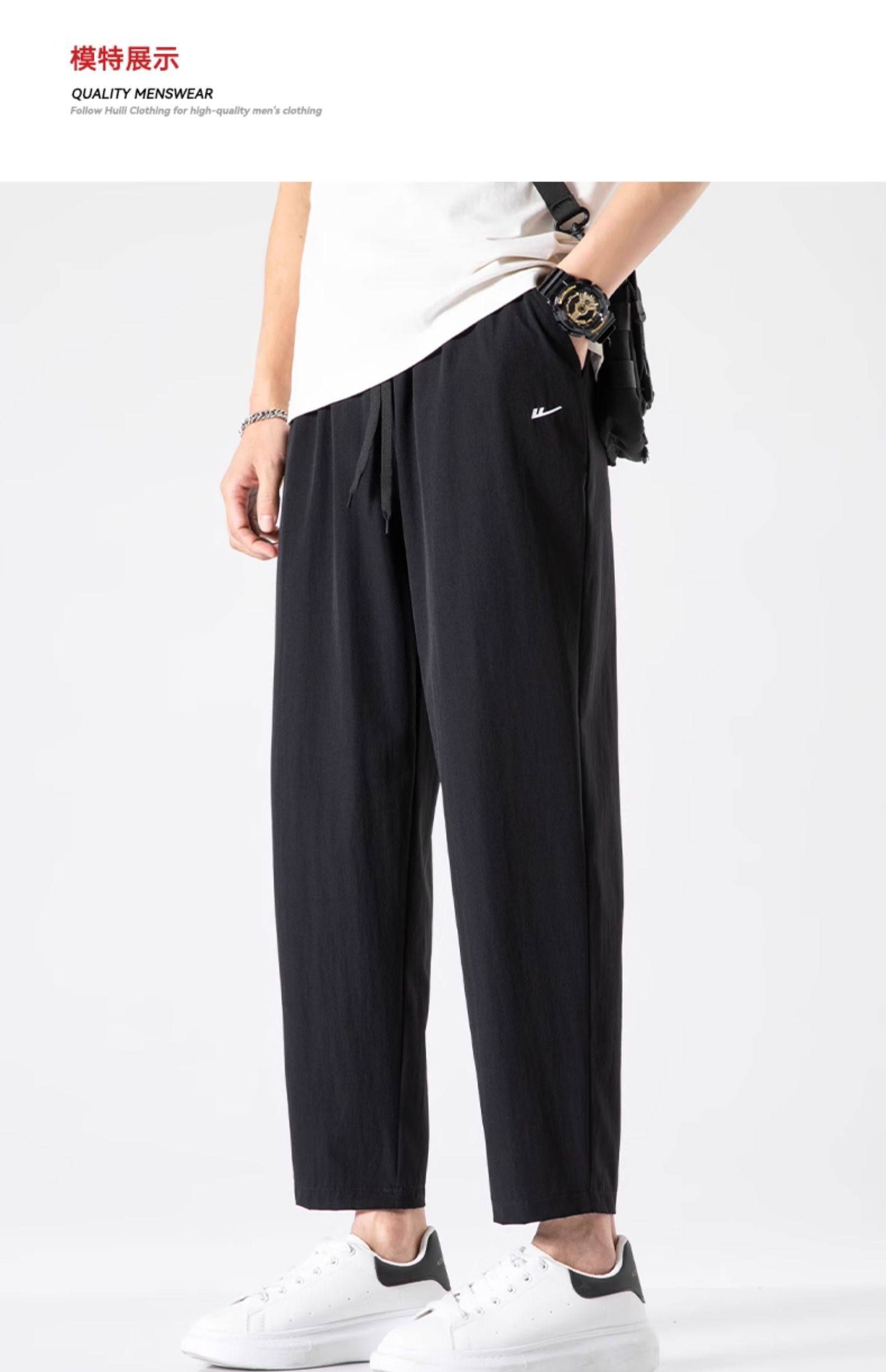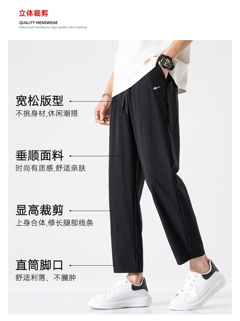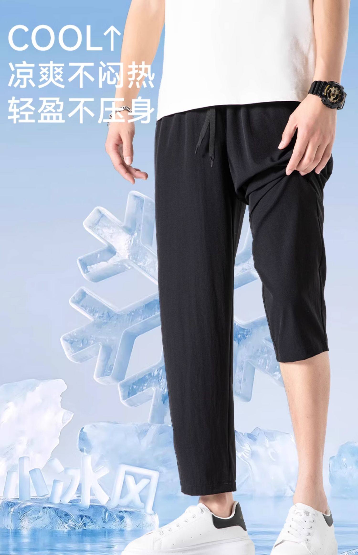 回力冰丝裤子男2025新款夏季薄款速干休闲宽松直筒裤运动九分长裤