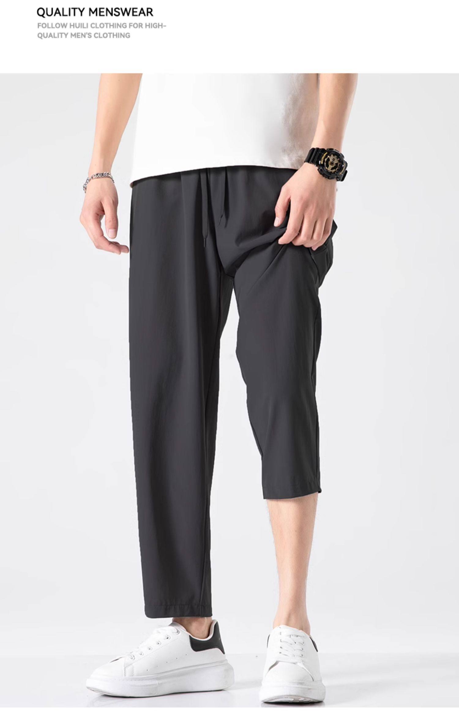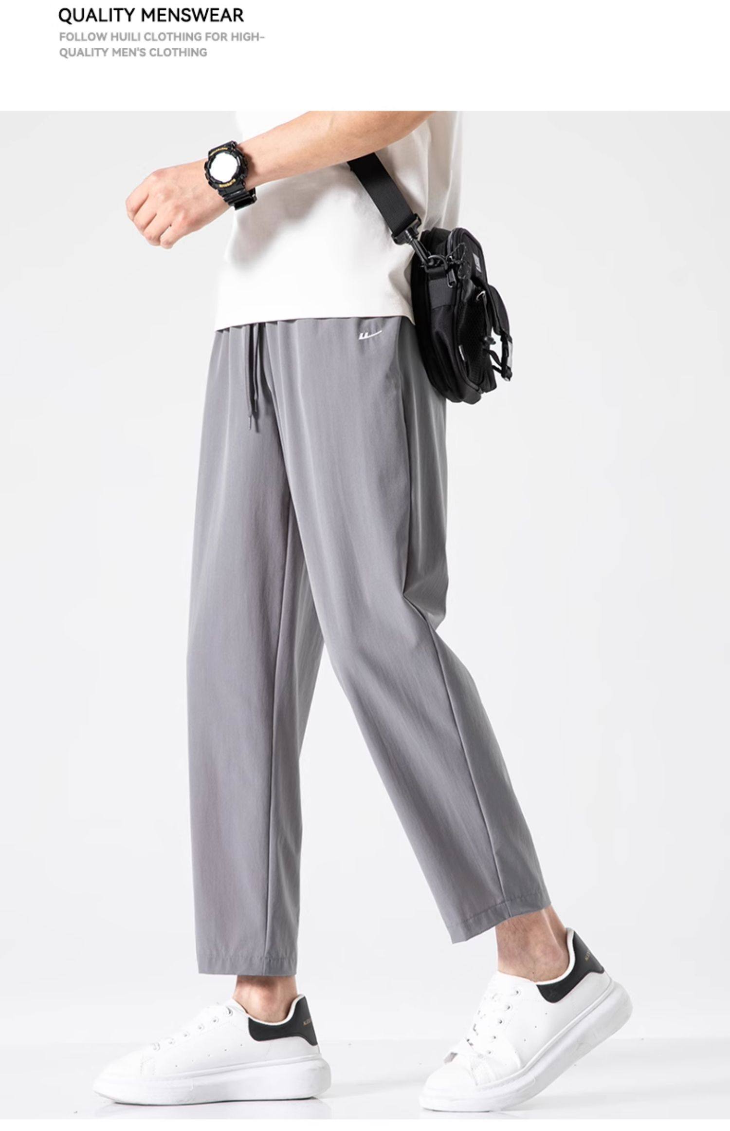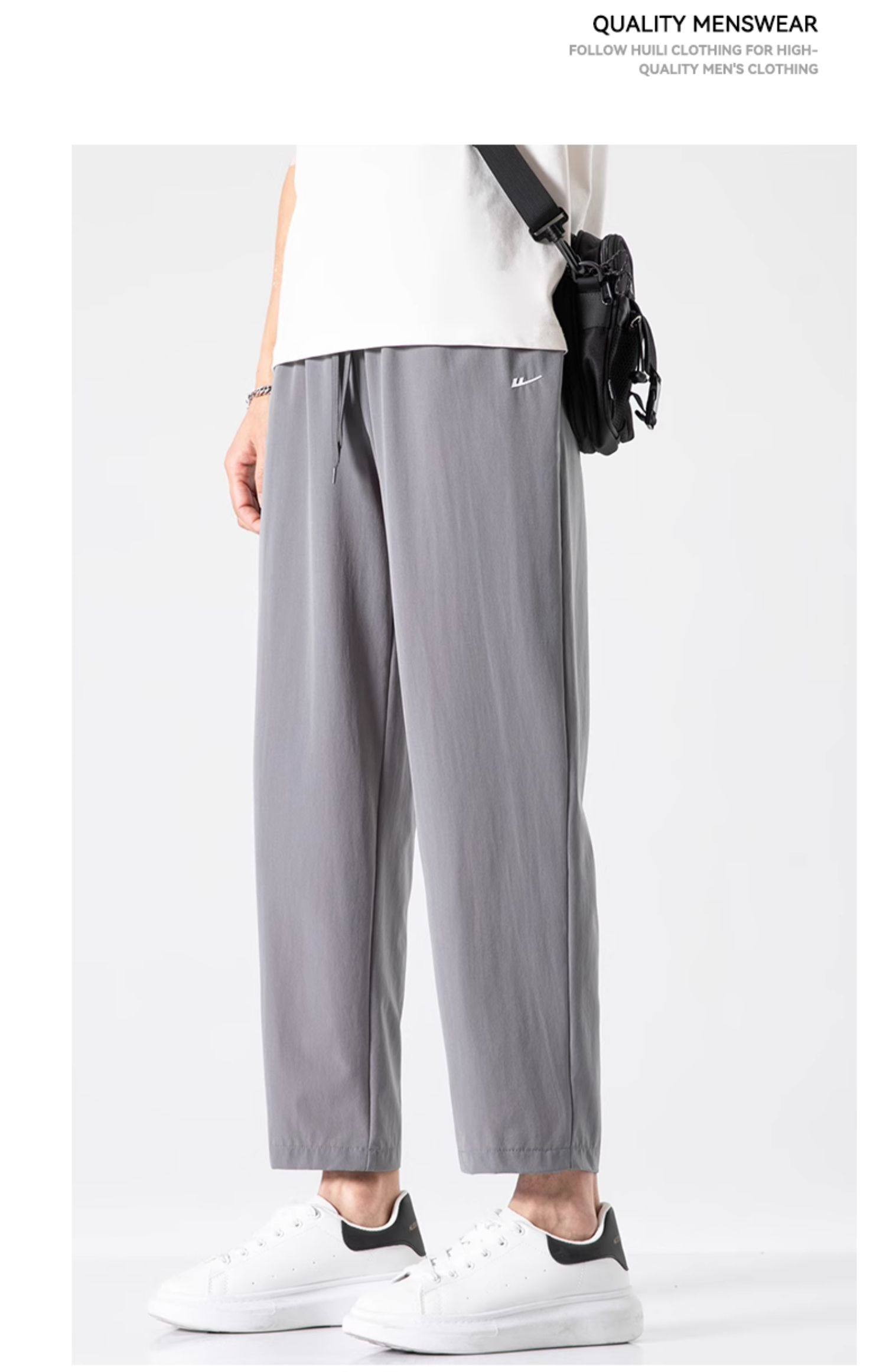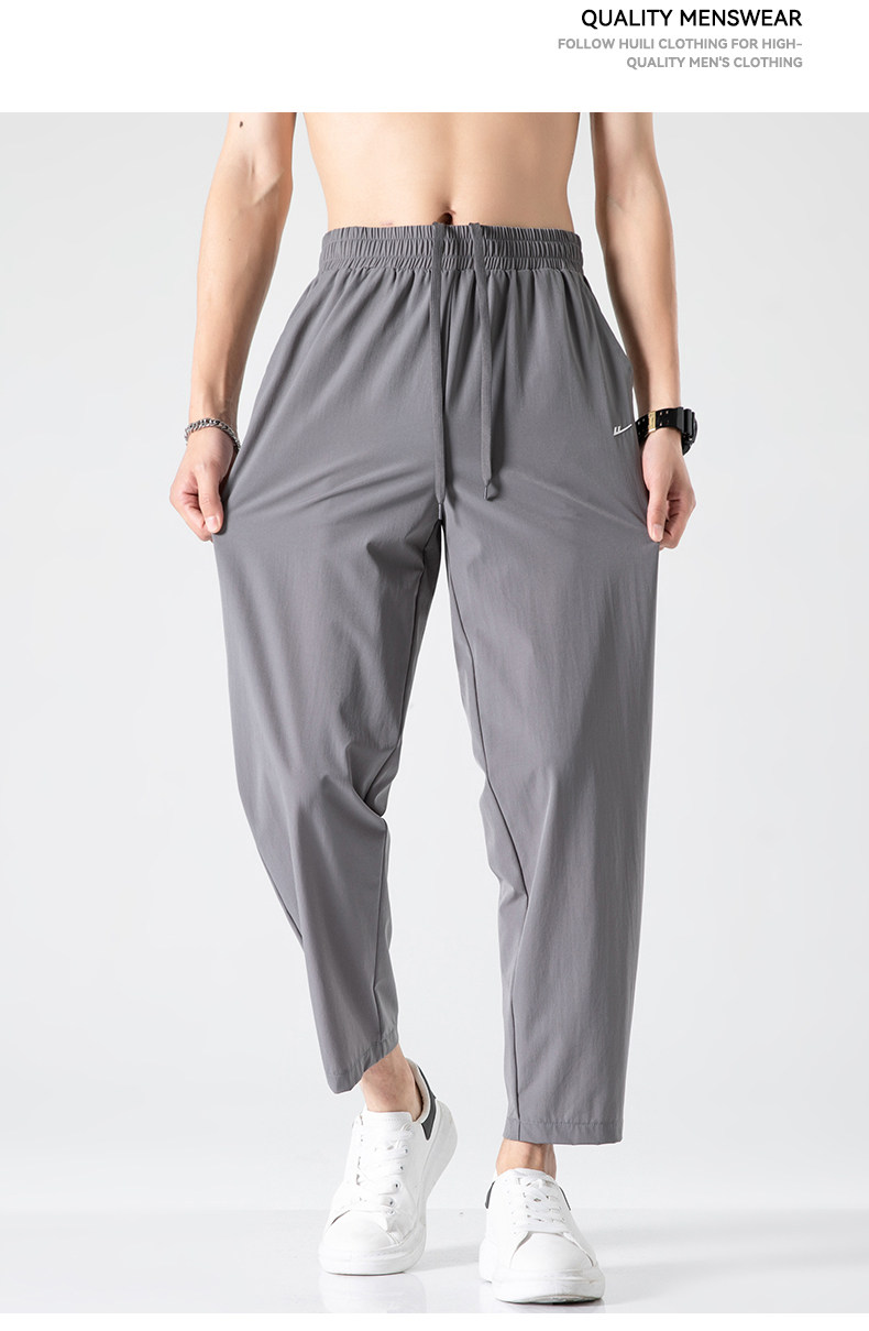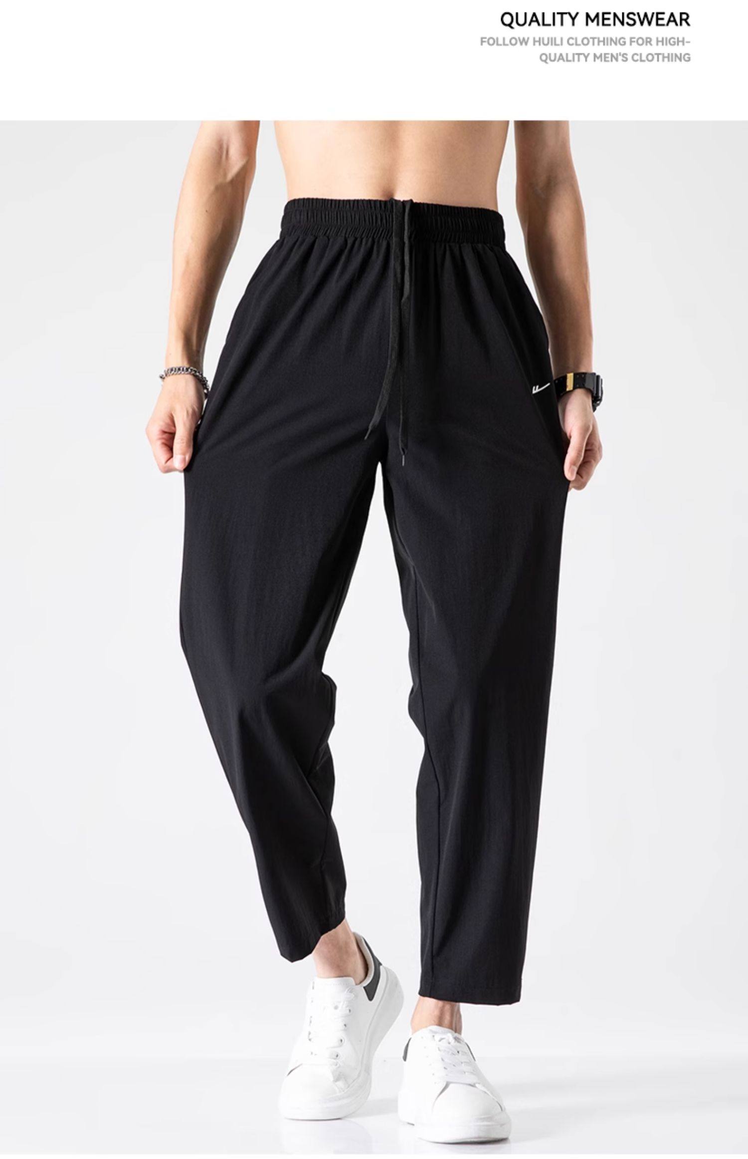 回力冰丝裤子男2025新款夏季薄款速干休闲宽松直筒裤运动九分长裤