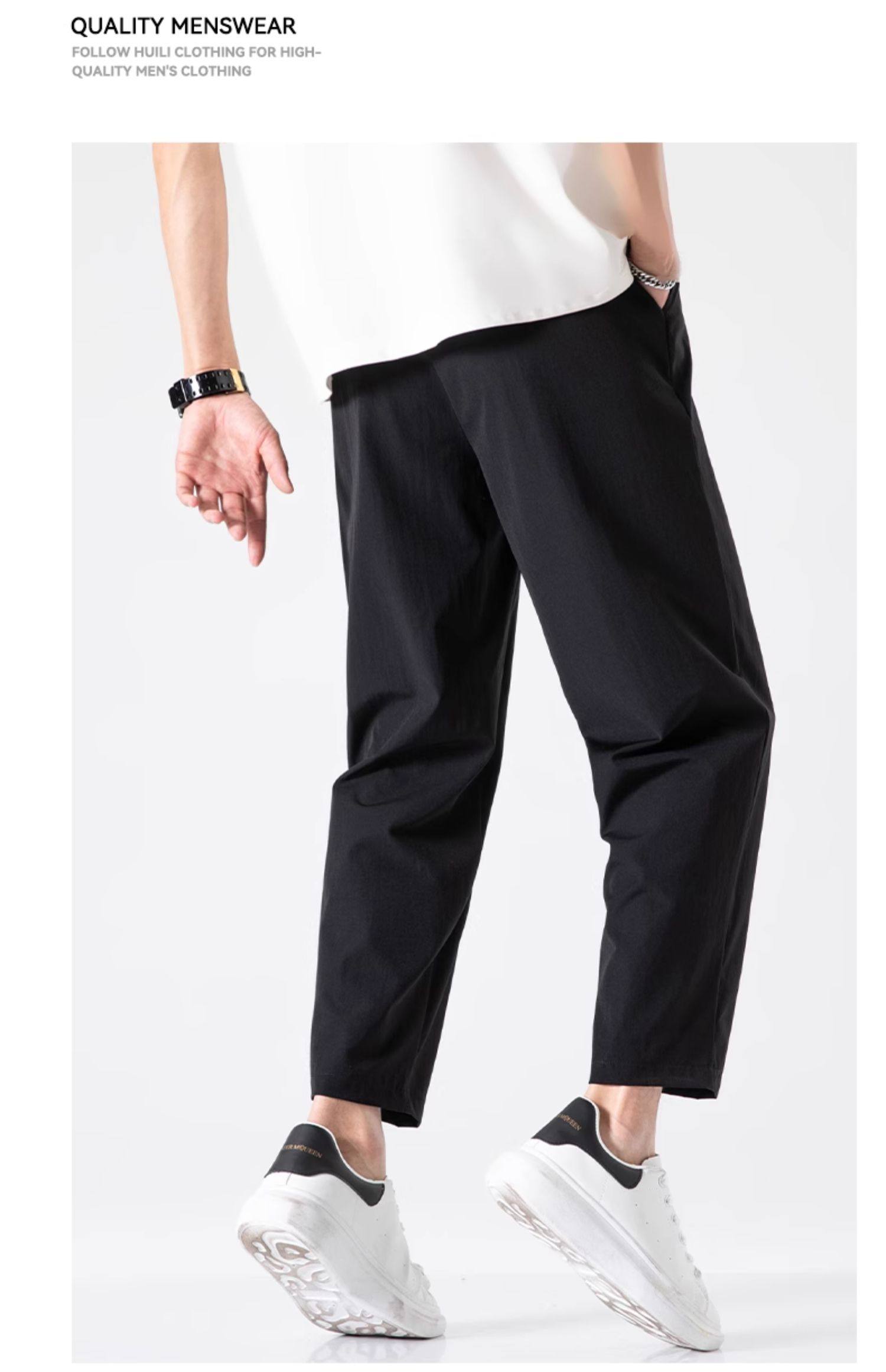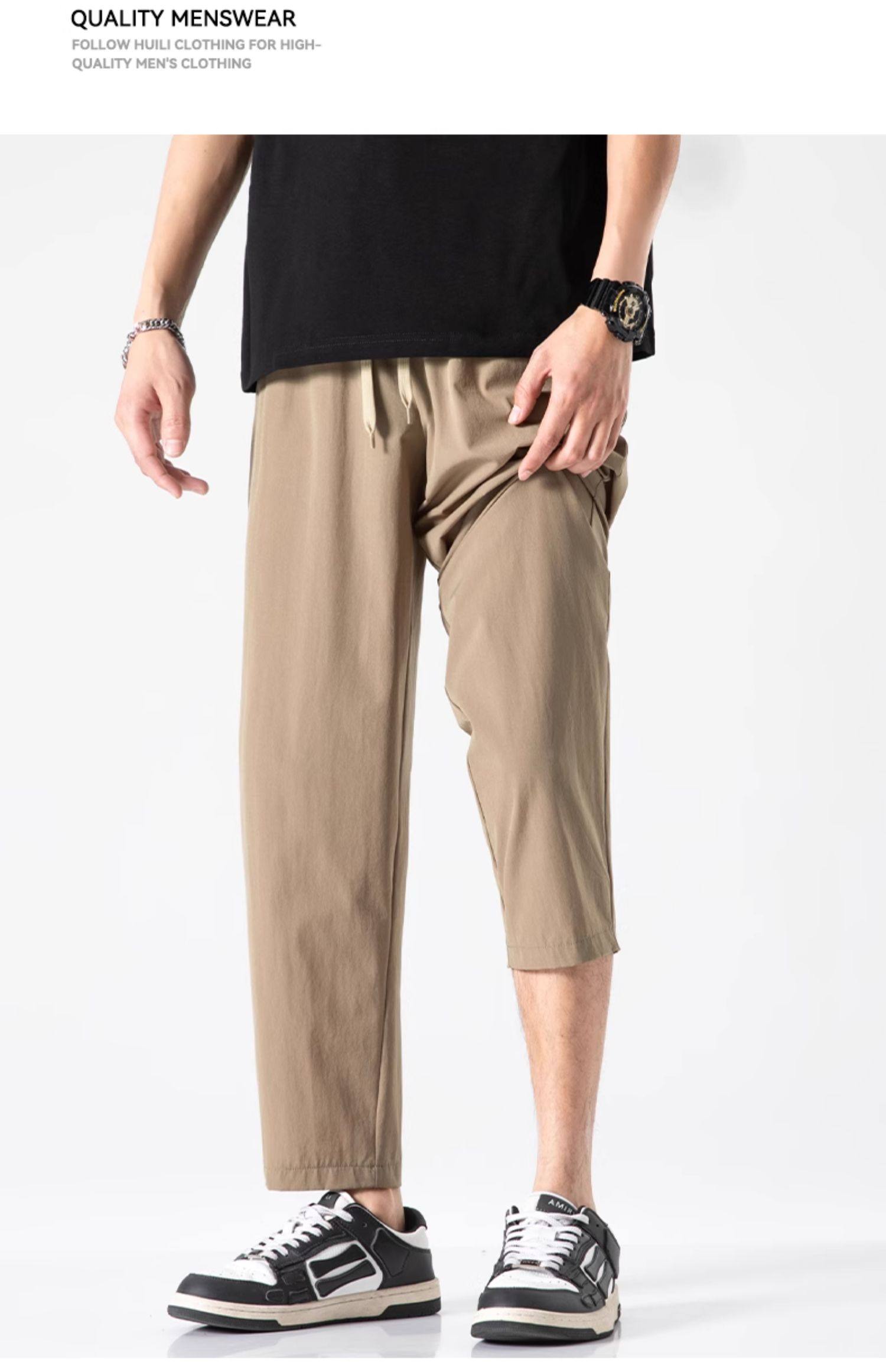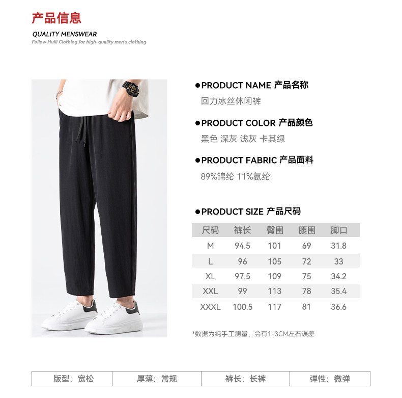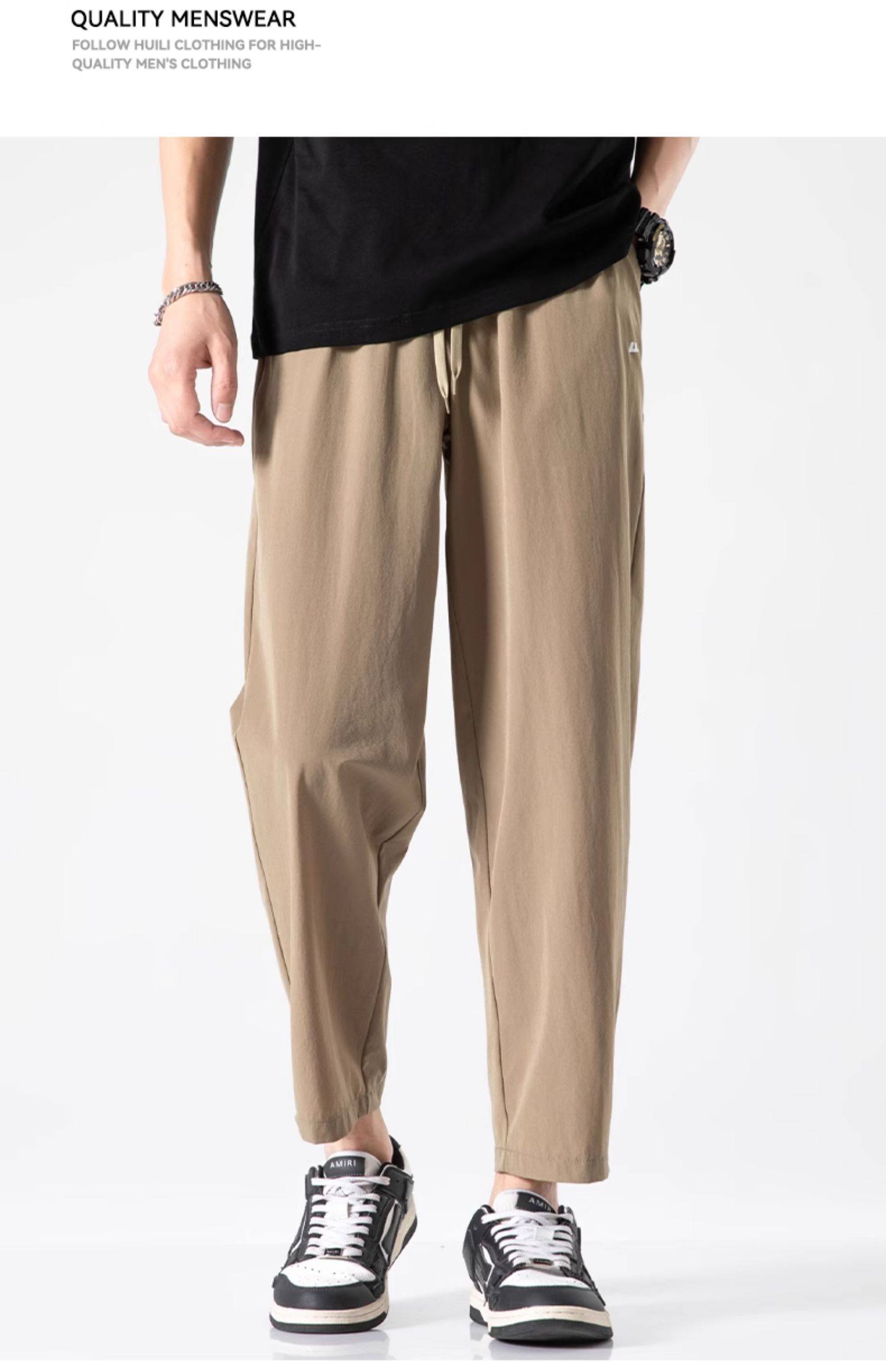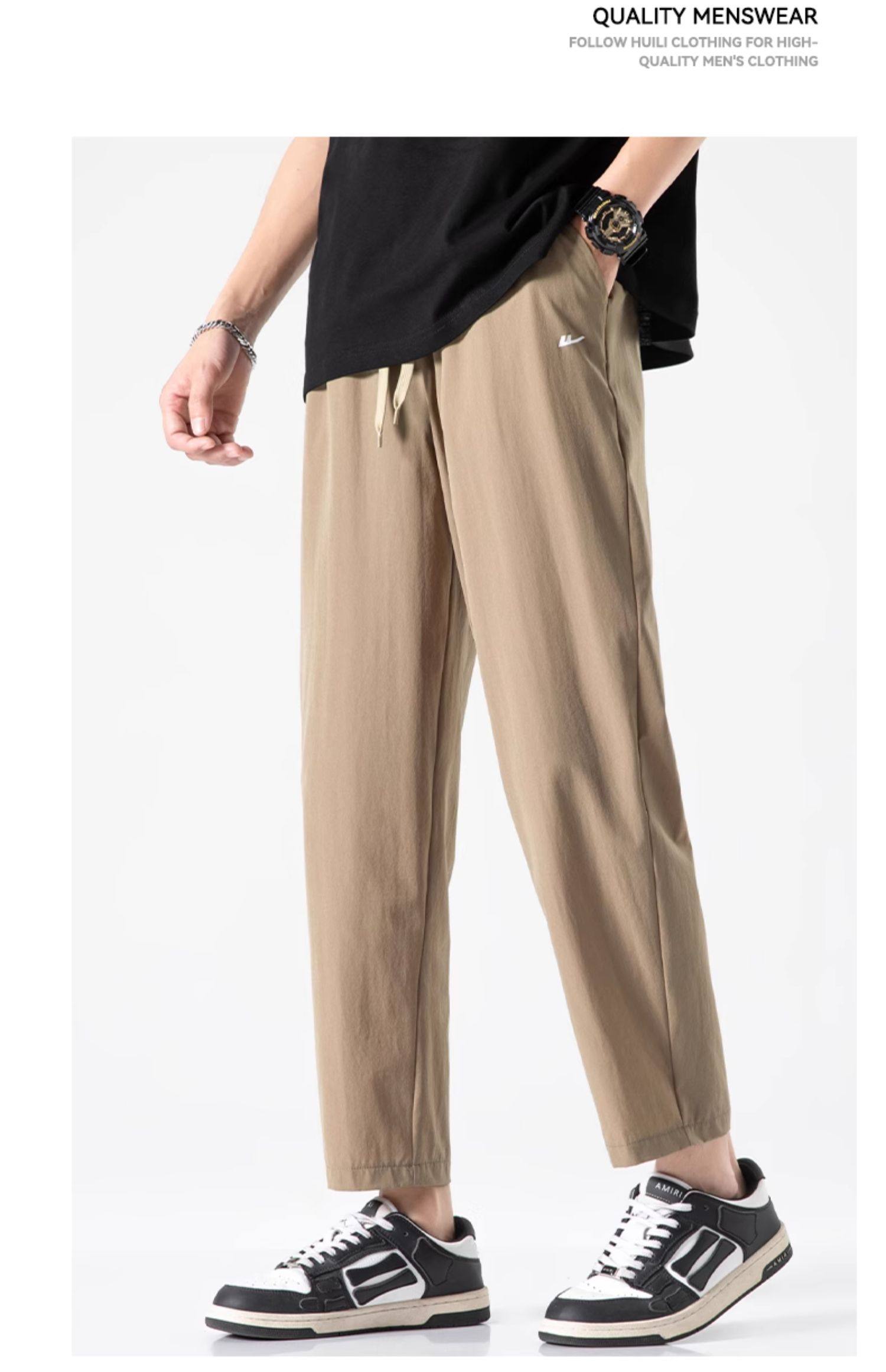 回力冰丝裤子男2025新款夏季薄款速干休闲宽松直筒裤运动九分长裤