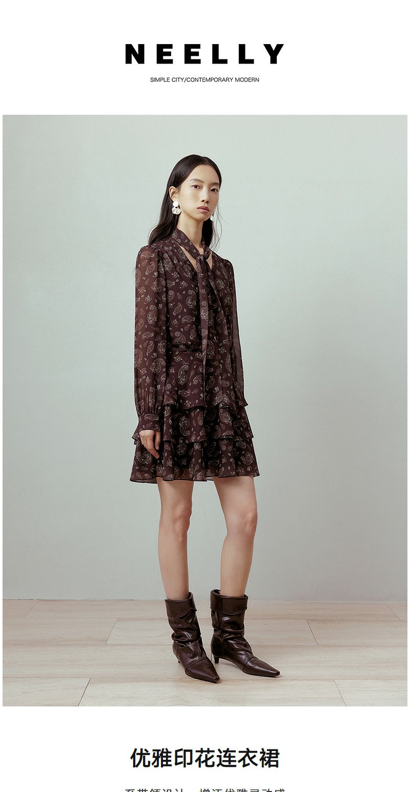 NEELLY纳俪商场同款春季新款时尚优雅宽松连衣裙女舒适休闲长裙N26012Y01052
