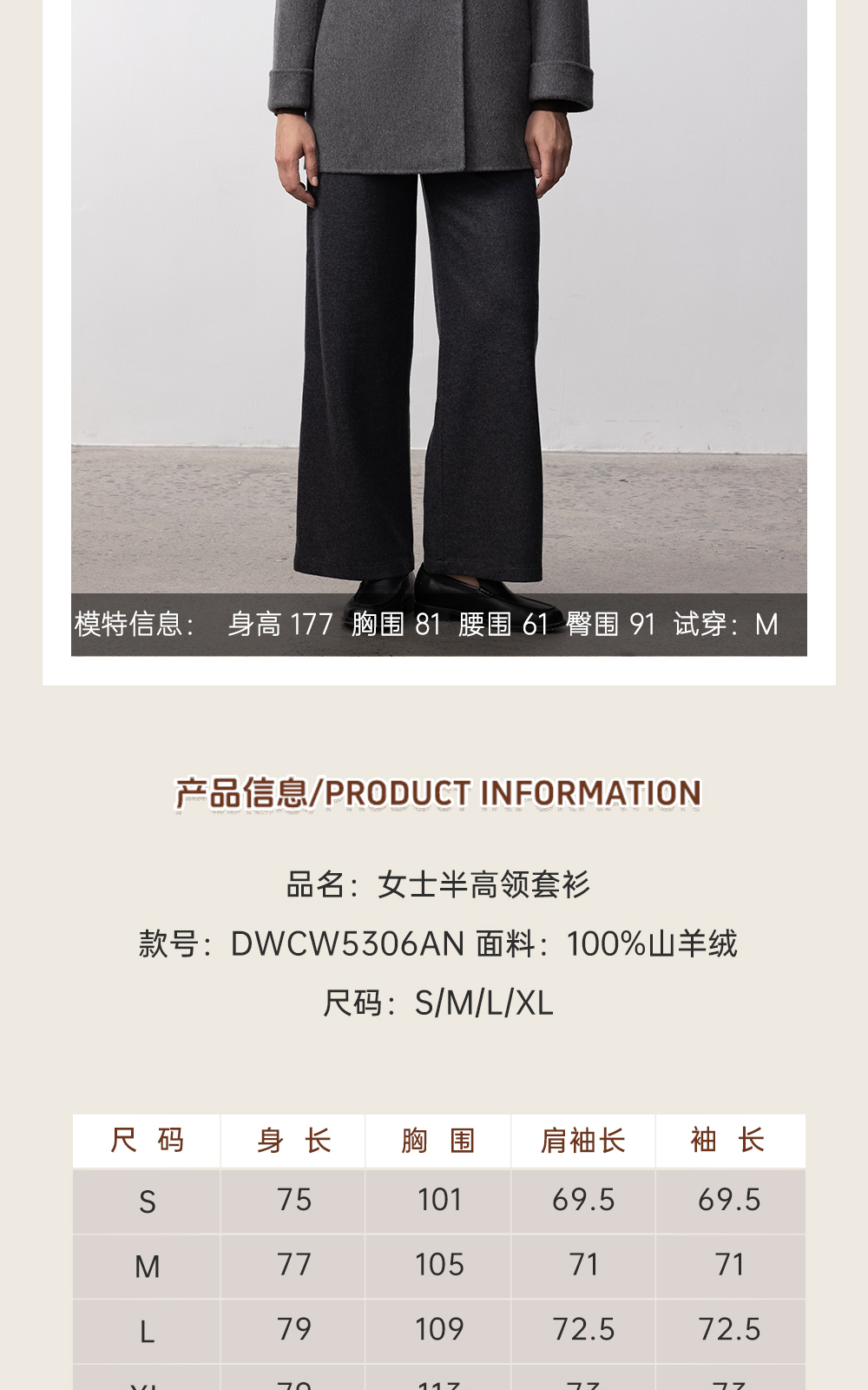 东黎 • 我不被驯化 山羊绒女士秋季西装领中长款大衣 5306