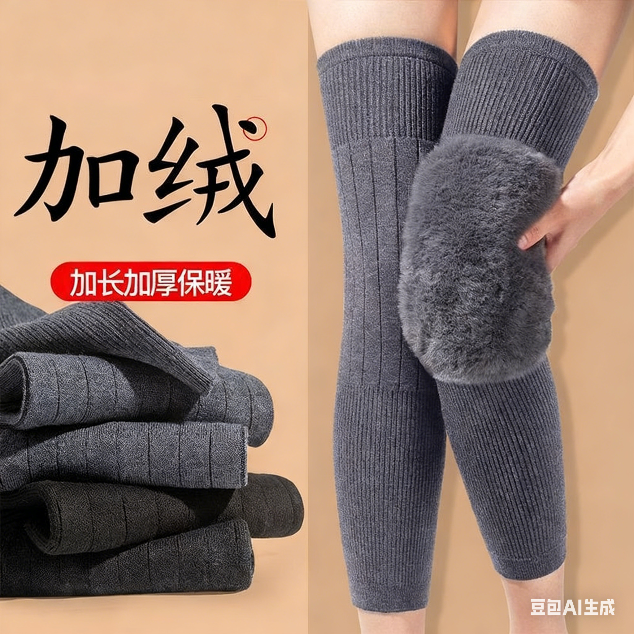 【买一送一,发2双】冬季加绒加厚保暖护膝 加长弹性好不勒腿 膝盖加厚细毛绒 随意运动 穿着不臃肿