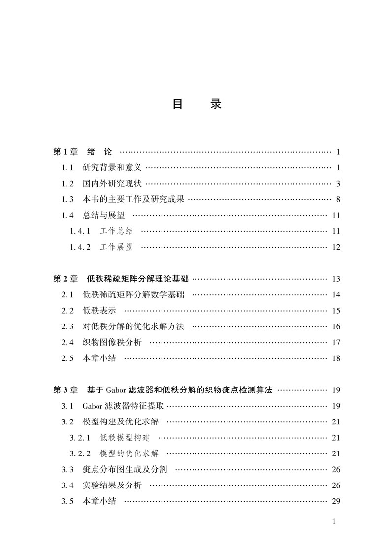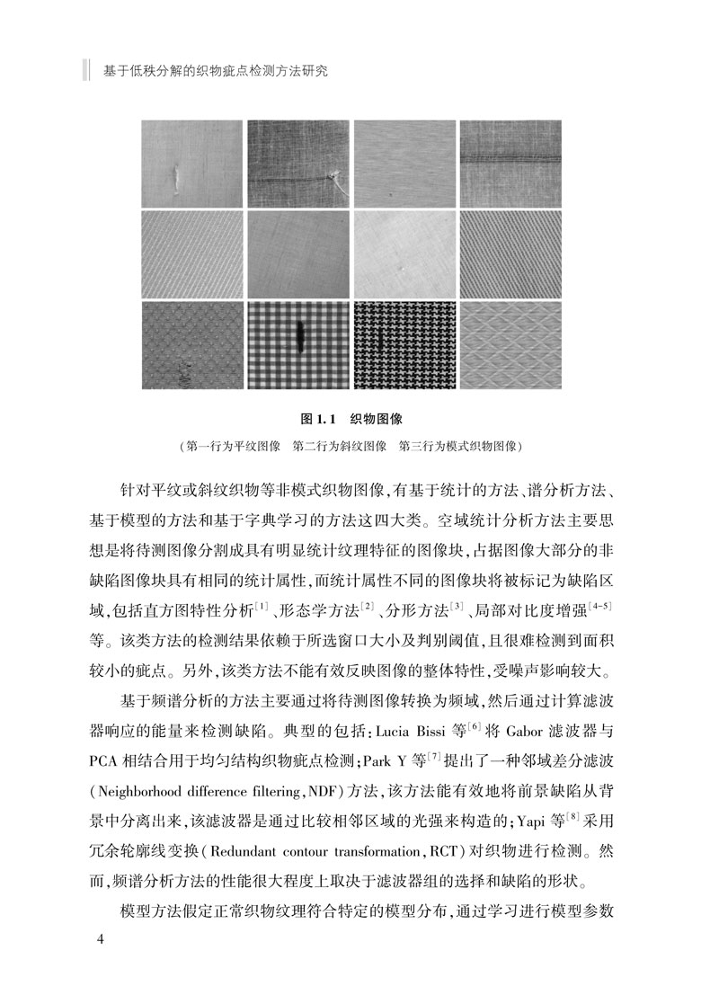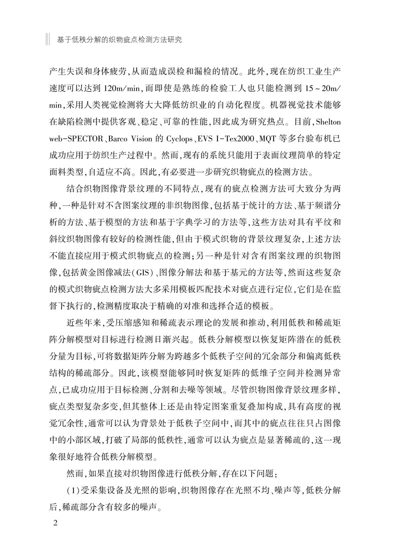 2019新书 基于低秩分解的织物疵点检测方法研究 李春雷 低秩稀疏矩阵分解优化求解方法 Gabor波滤器模型构建算法应用 生物视觉图像