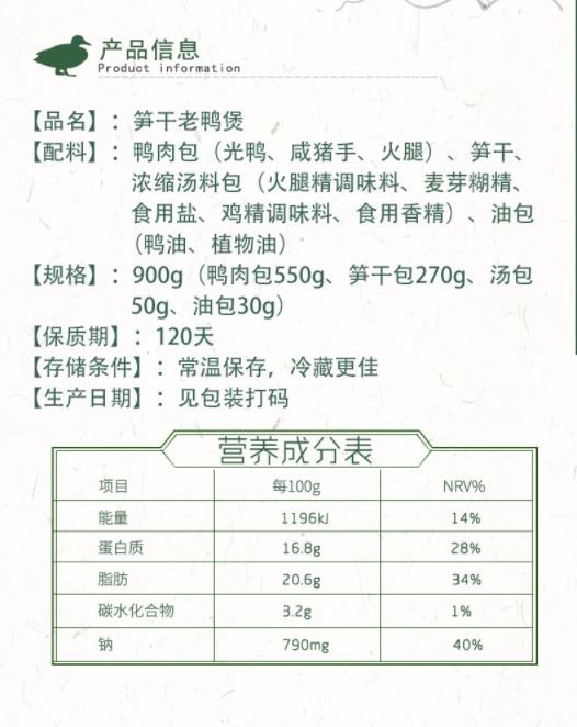 南农 笋干老鸭煲 900g(含鸭)