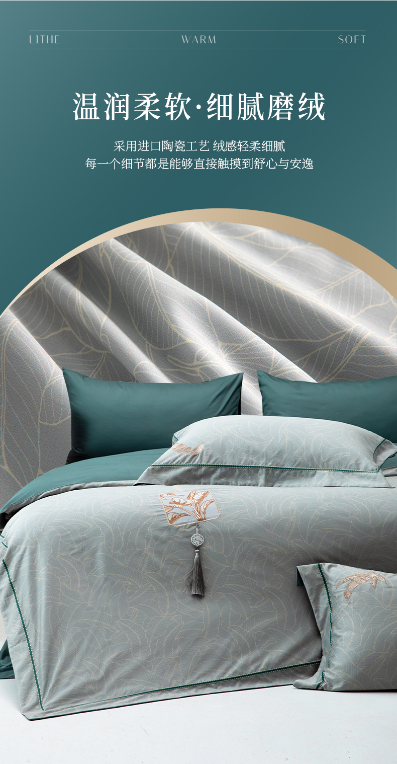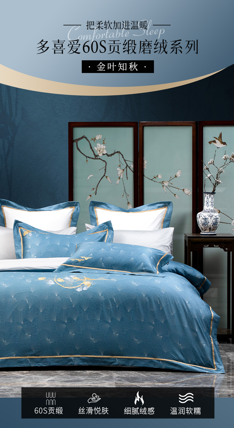 多喜爱 新绒棉磨绒床上用品四件套金叶知秋/月影芭蕉/粉墨诗韵/fx