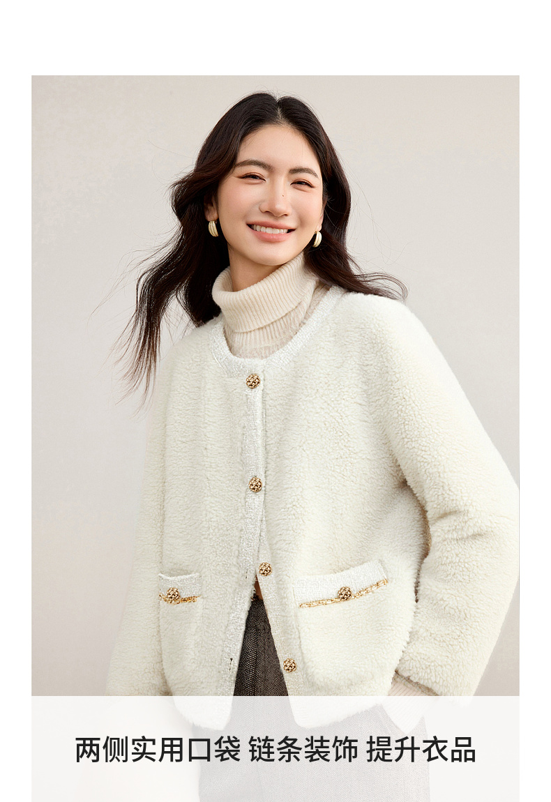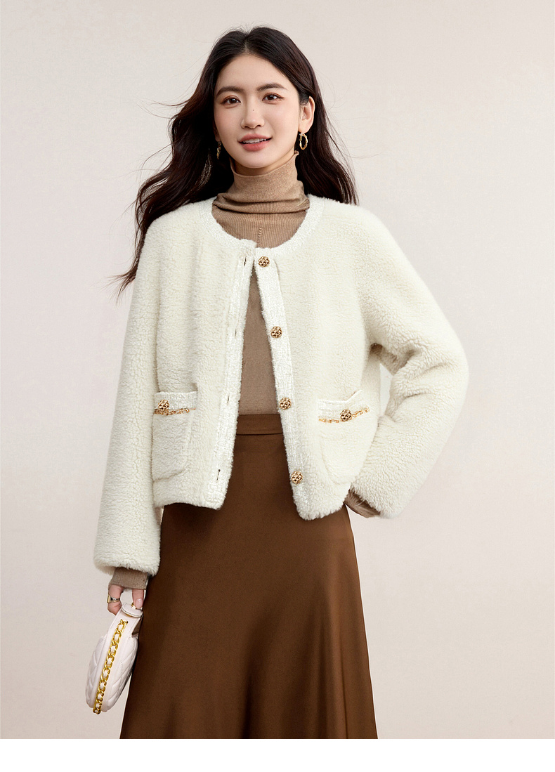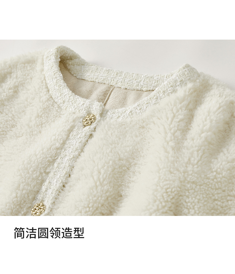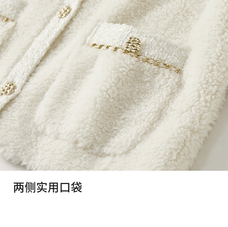【内购】休闲皮毛一体保暖颗粒绒两侧实用口袋单排扣圆领宽松小香风外套-W54PB4901X
