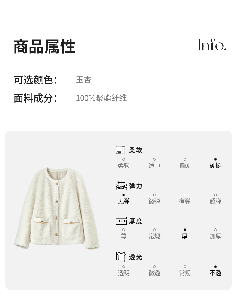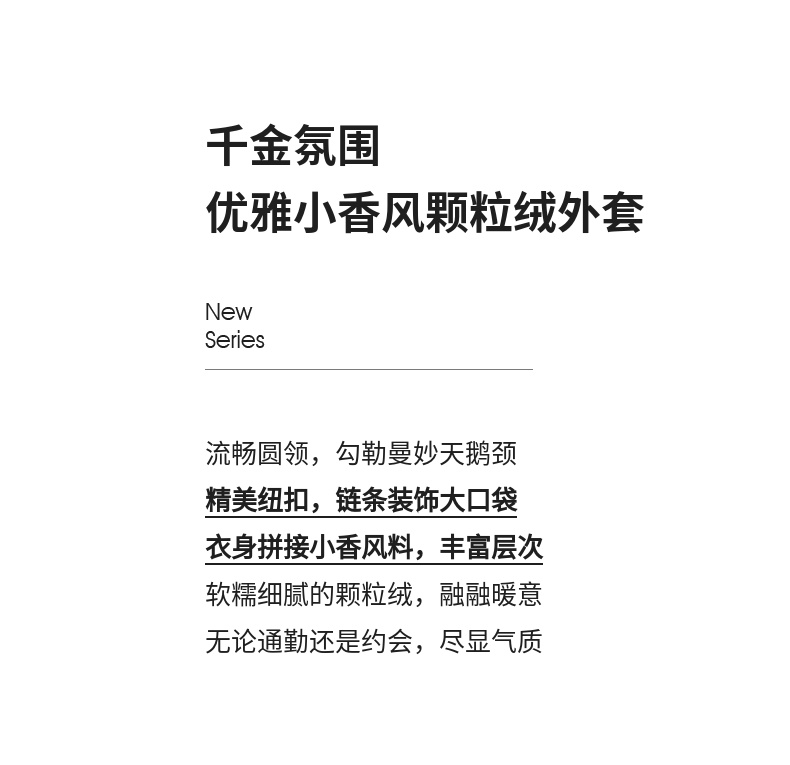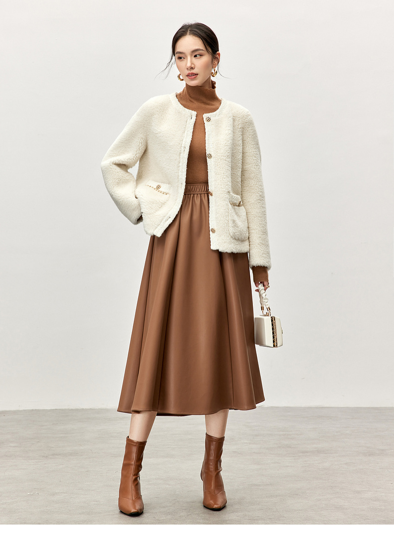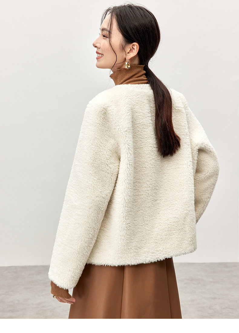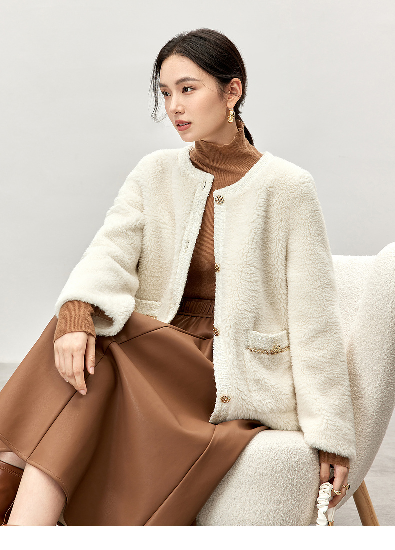【内购】休闲皮毛一体保暖颗粒绒两侧实用口袋单排扣圆领宽松小香风外套-W54PB4901X