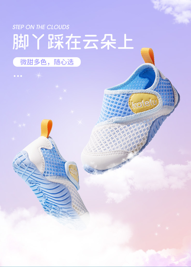 卡特兔宝宝学步鞋2026年春季赤足训练鞋小白鞋透气幼儿园室内鞋