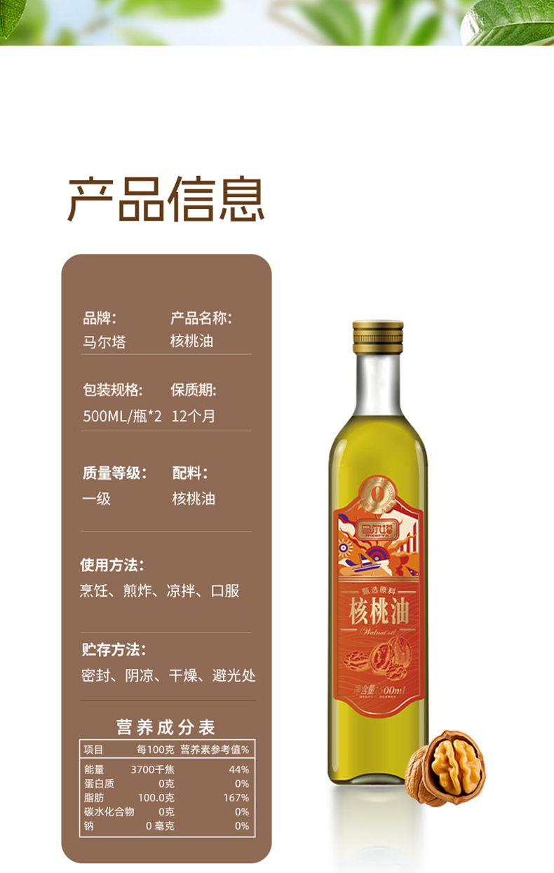 马尔塔核桃油双支礼盒(精装)500ML*2-XJ