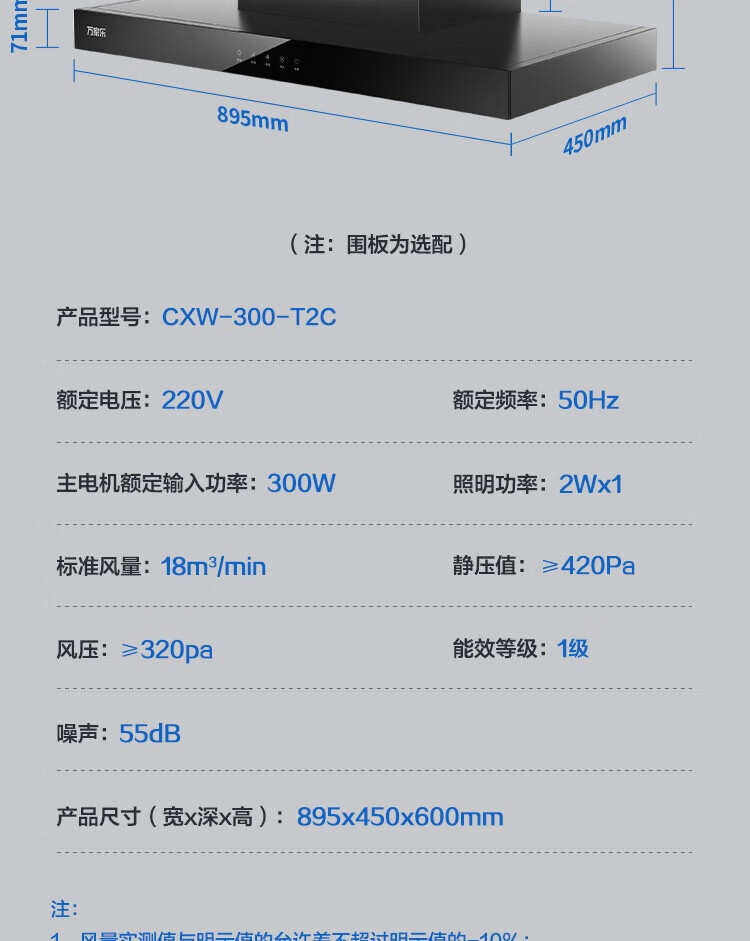 万家乐欧式450mm黄金深度 大尺寸油烟机CXW-300-T2C