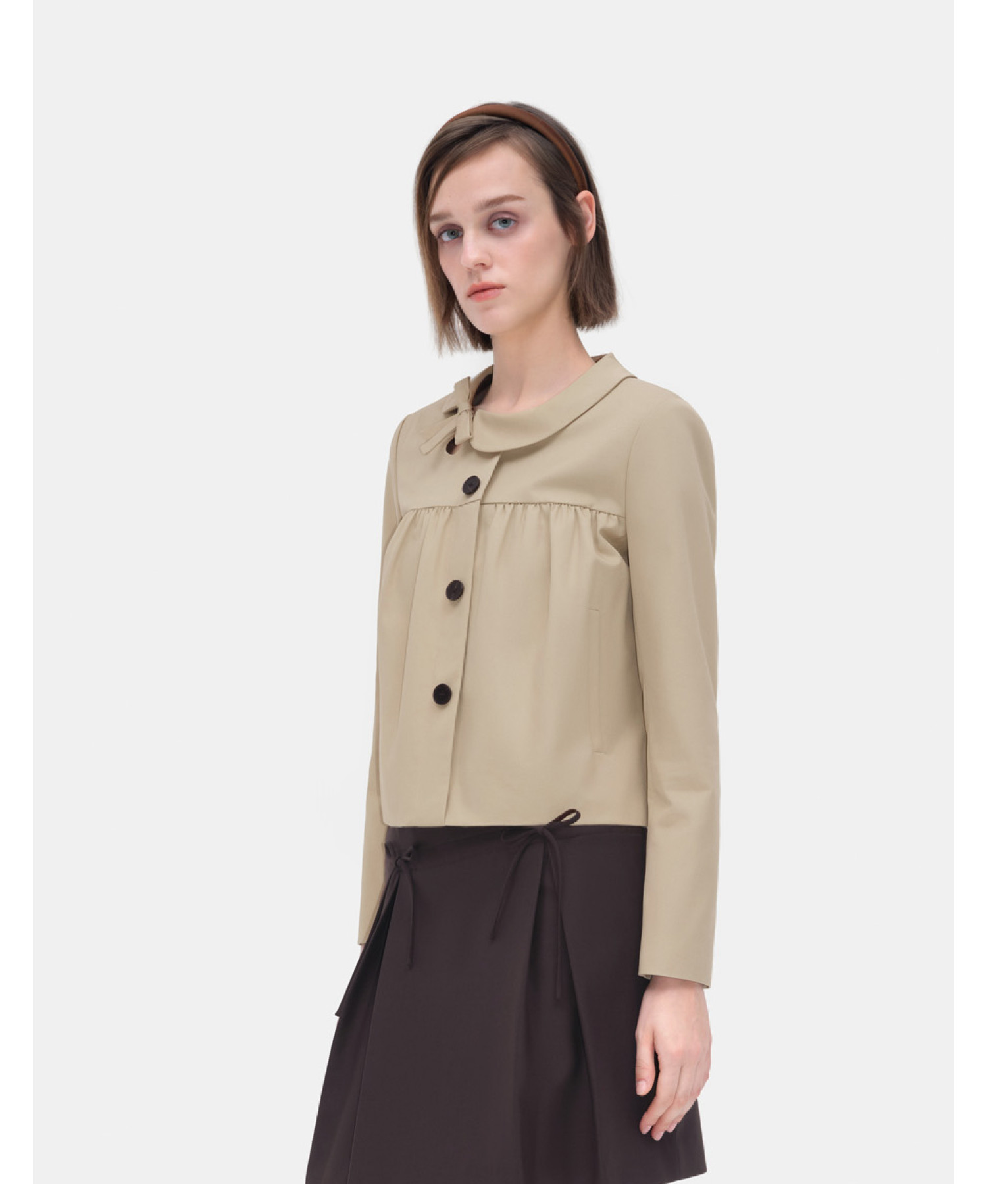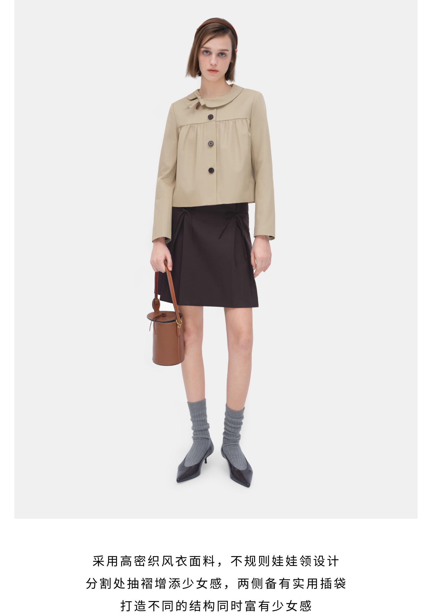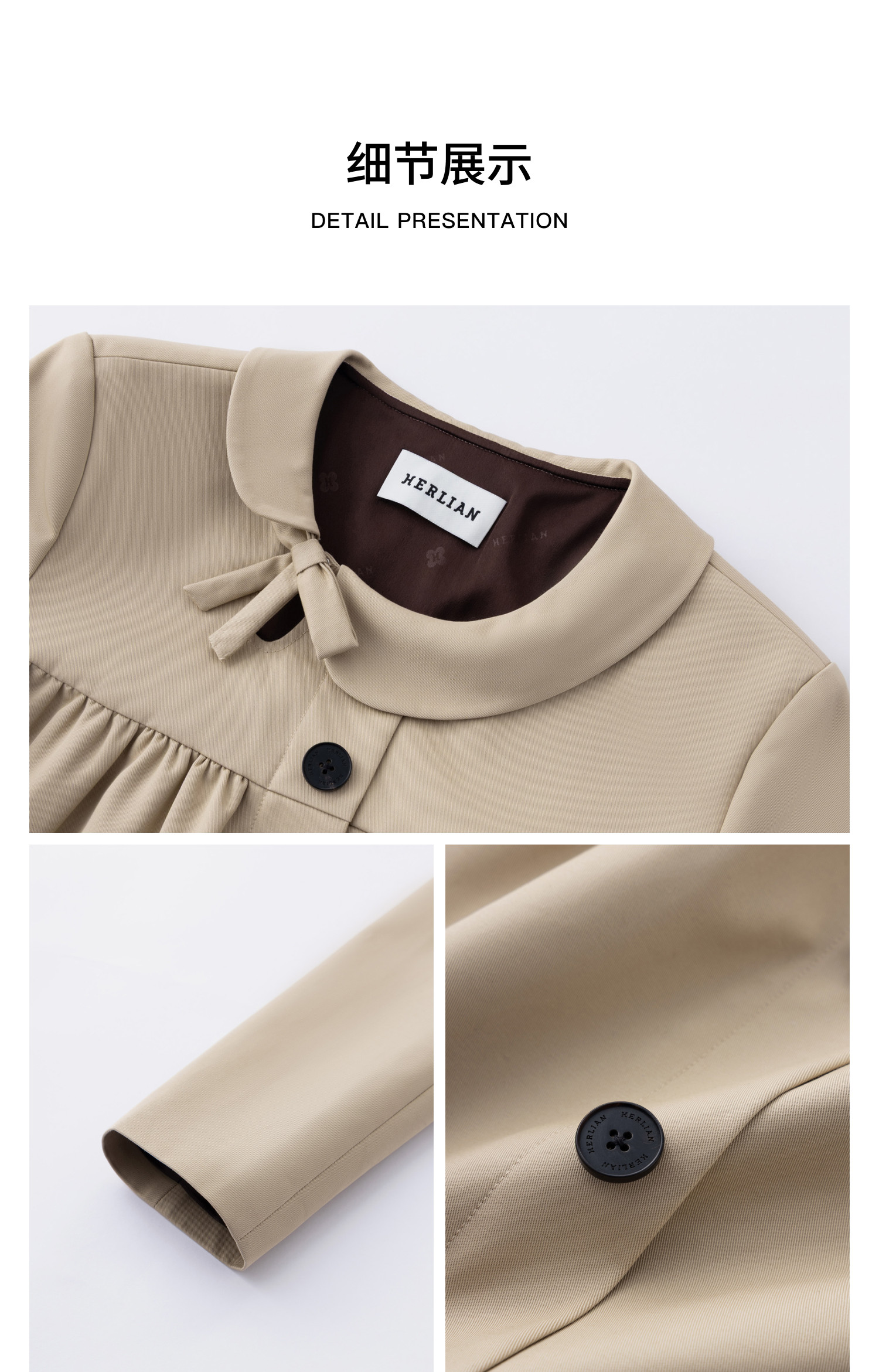 Herlian2026年春季新品不对称娃娃领设计女士少女系复古外套