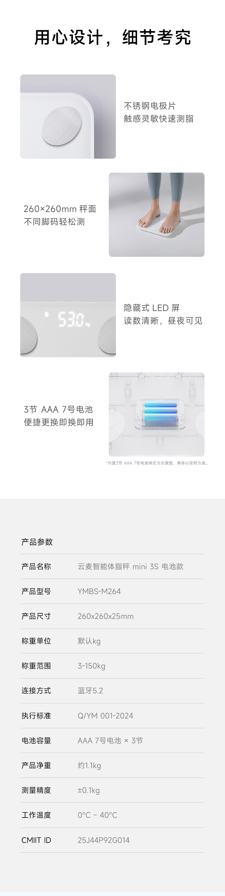 云麦智能体脂秤 mini 3S 电池款