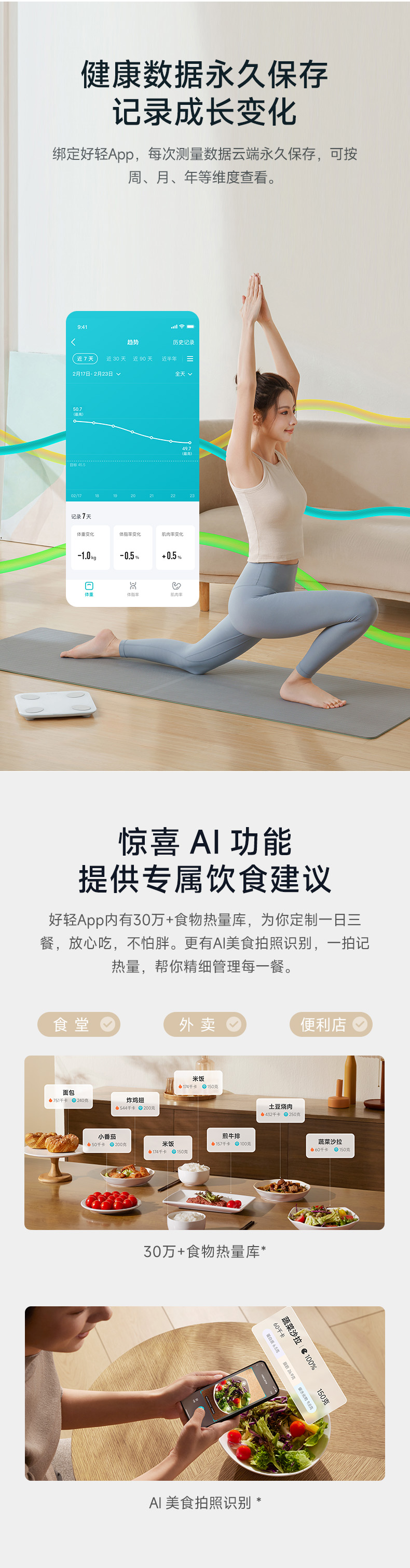 - 云麦官方精选商城,您可以在这里购买:美味健康的减脂食品、好轻智能体脂秤、腕力球、运动速干巾、瑜伽垫、瑜伽球等健身装备。