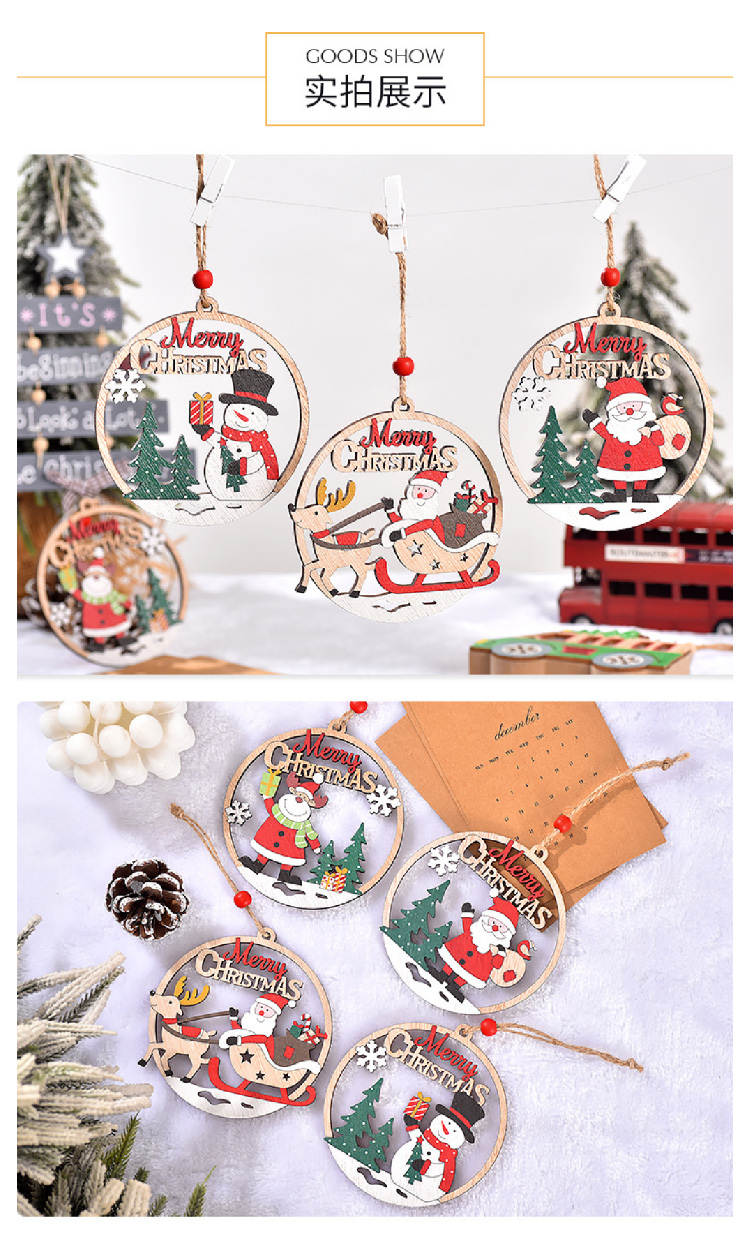 【圣诞礼物】【2件装】圣诞挂件圣诞装饰木质挂件 圣诞节镂空老人挂牌圣诞节开门装饰
